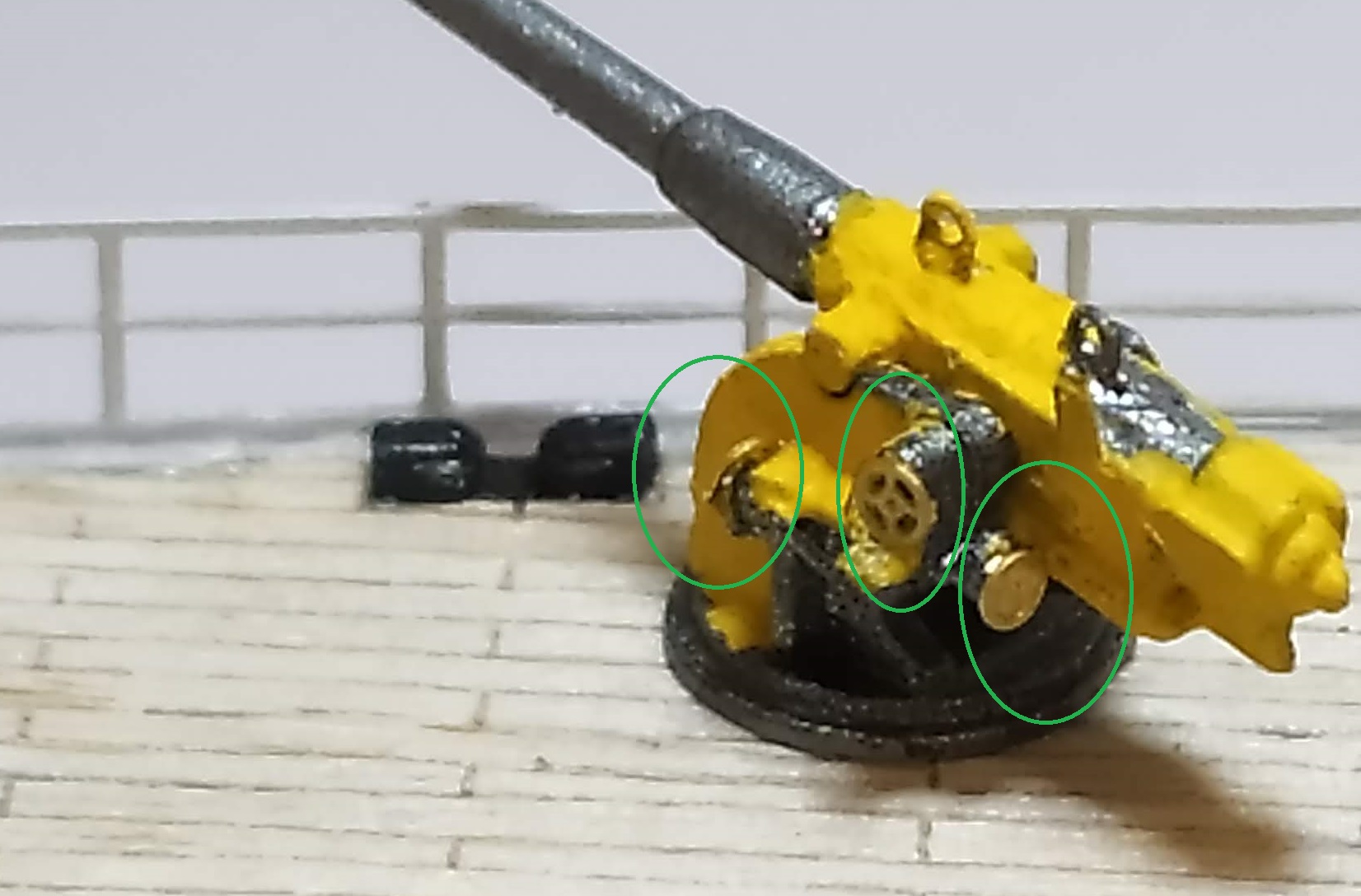Также доделал и установил все орудия 152 мм, После установки ещё добавил на орудия по 3 маховика наводки орудия. Взял их с купленной запасной пластины от NorthStarModel