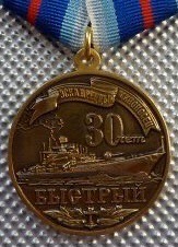 И наконец эсминец типа "Сарыч" пр.956 учавствовавший в холодной войне переживший Советский союз и почти всех собратьев кроме североморского. Действительно достойно пронёс военно-морской флаг нашей страны и не разу не ударил в грязь лицом. Как сказано в одной из книг Пикуля: Корабли как и люди живут и умирают иногда бесславно! «Быстрый» не из их числа. Этот корабль связь эпох СССР и России! 30 лет в строю и на страже родины!