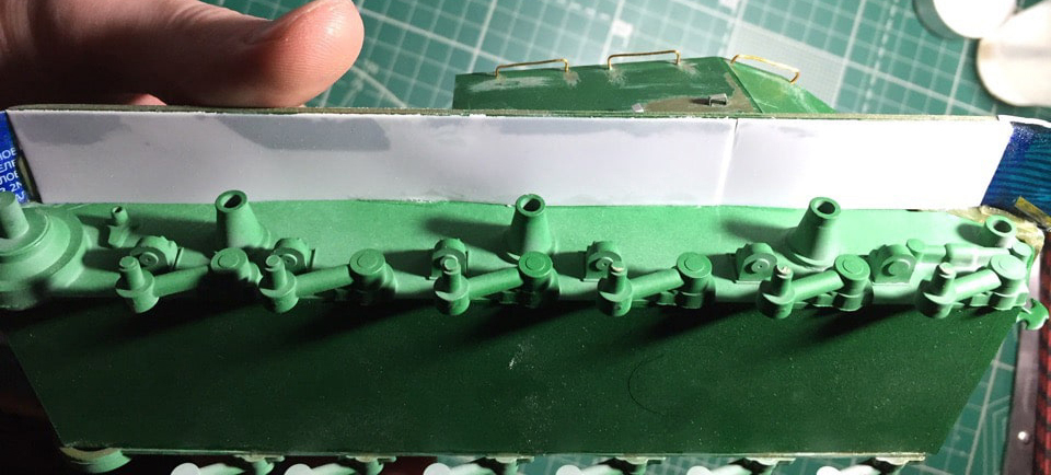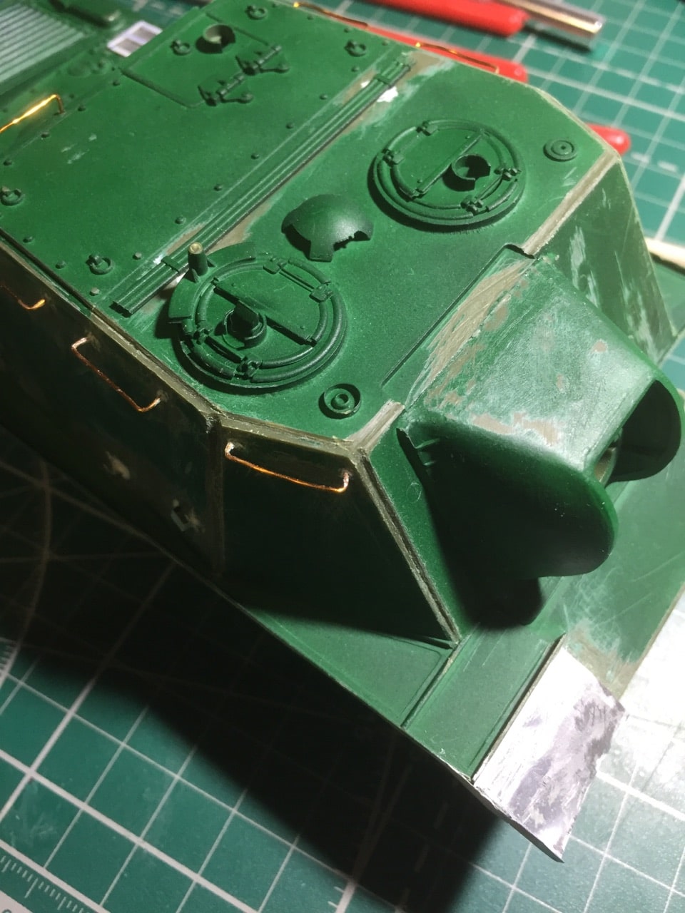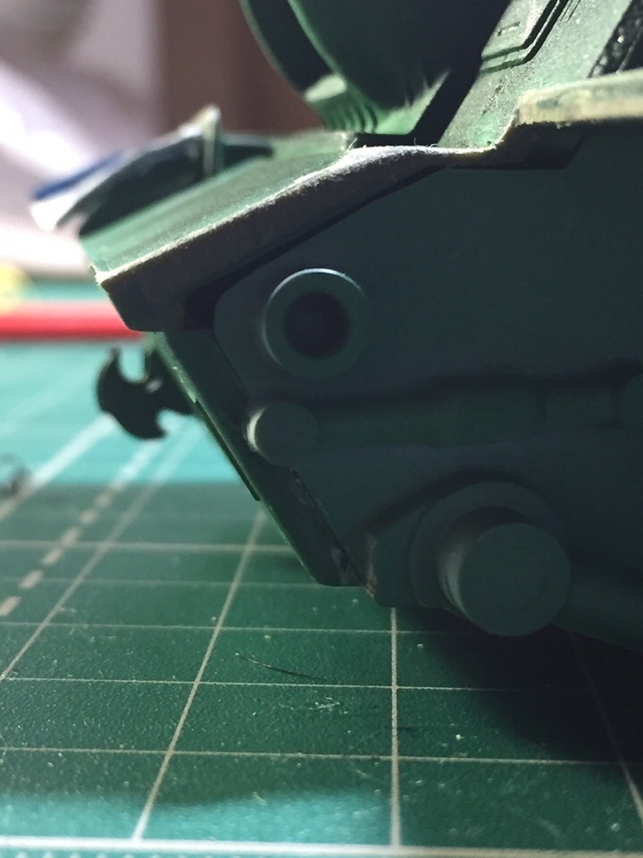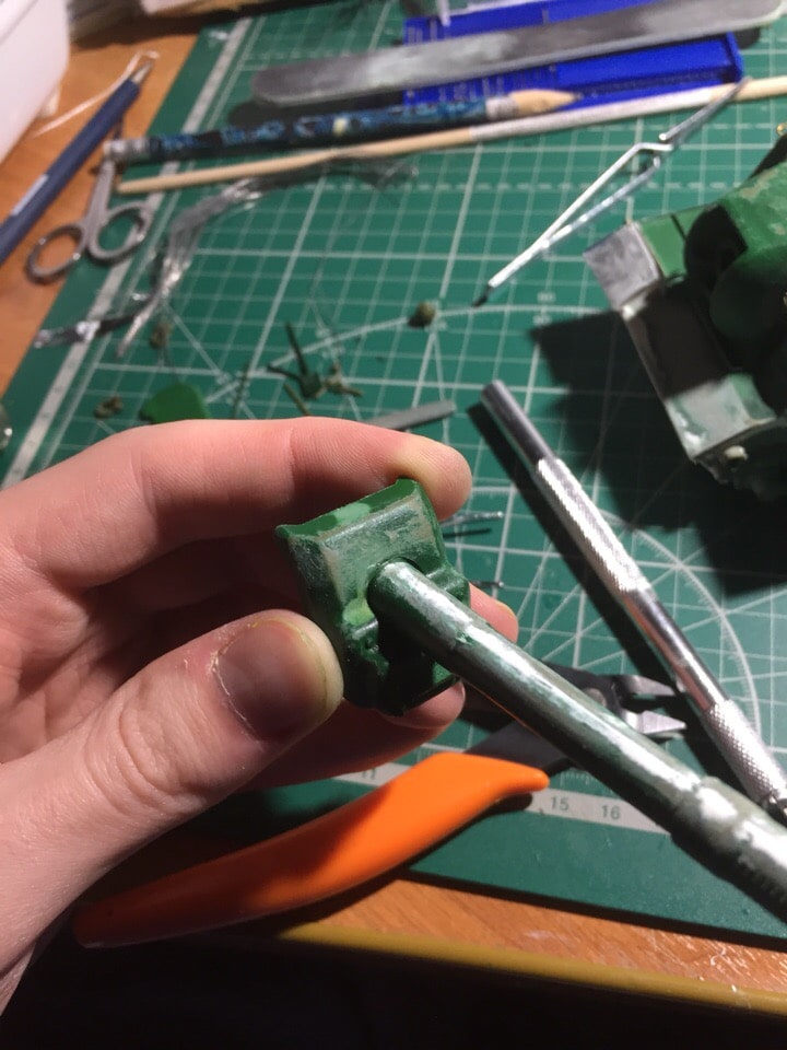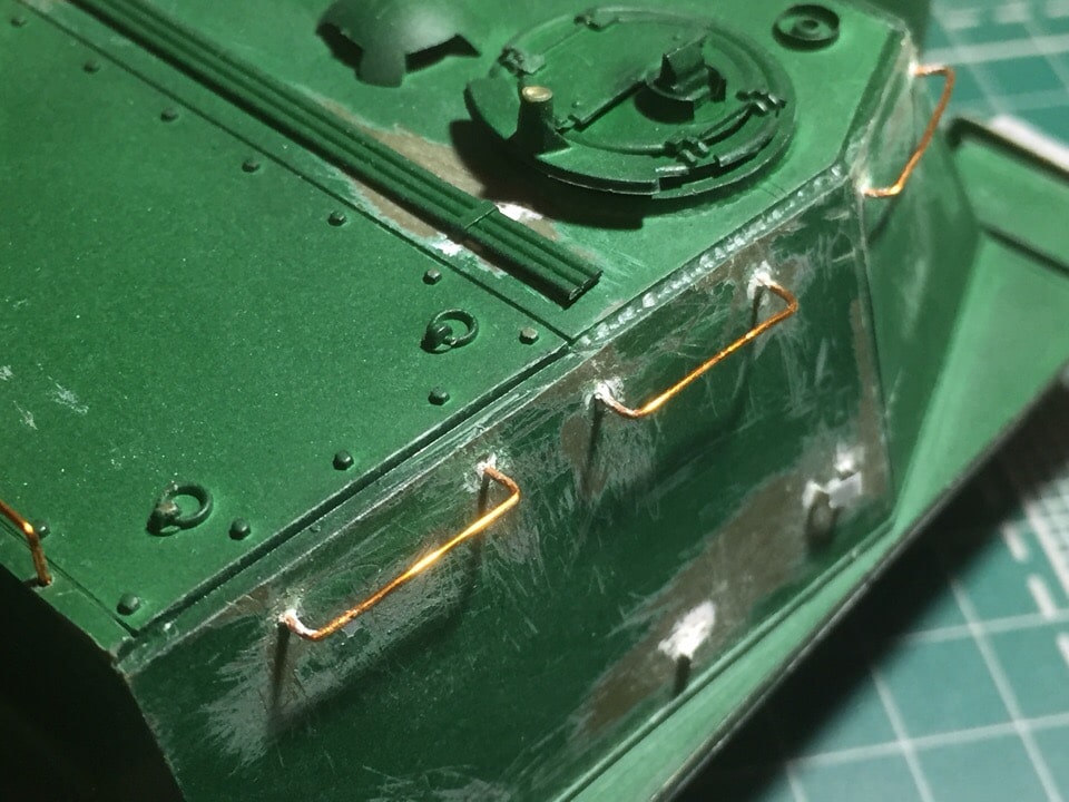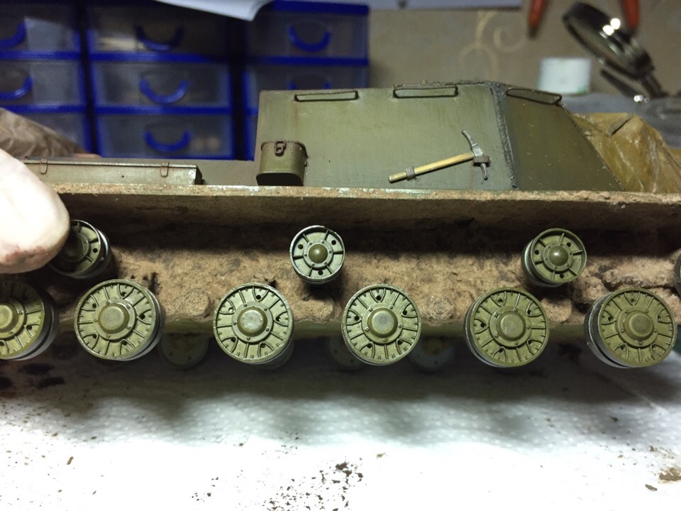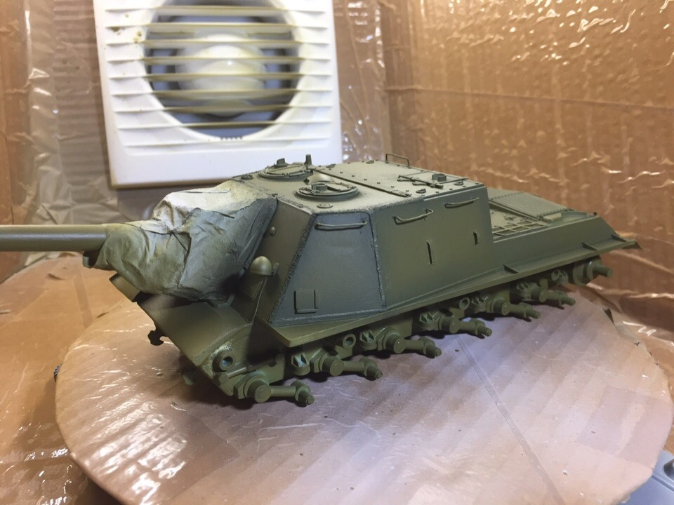 Подшпаклевал и подшлифовал стык орудия. Над ним еще ведется работа, фото тоже не совсем достоверное, новое сделать еще не успел. Там добавились крючки.