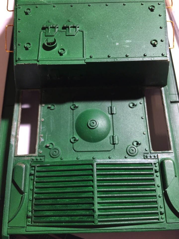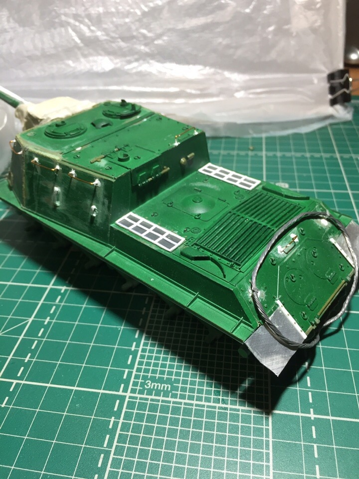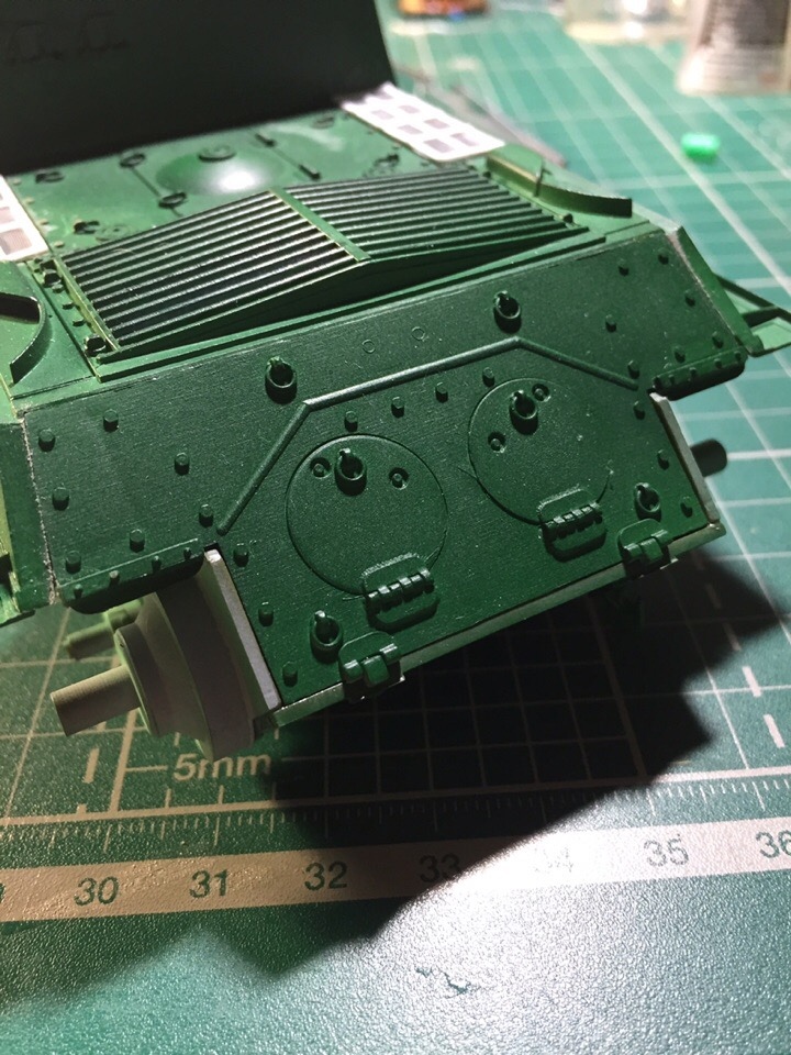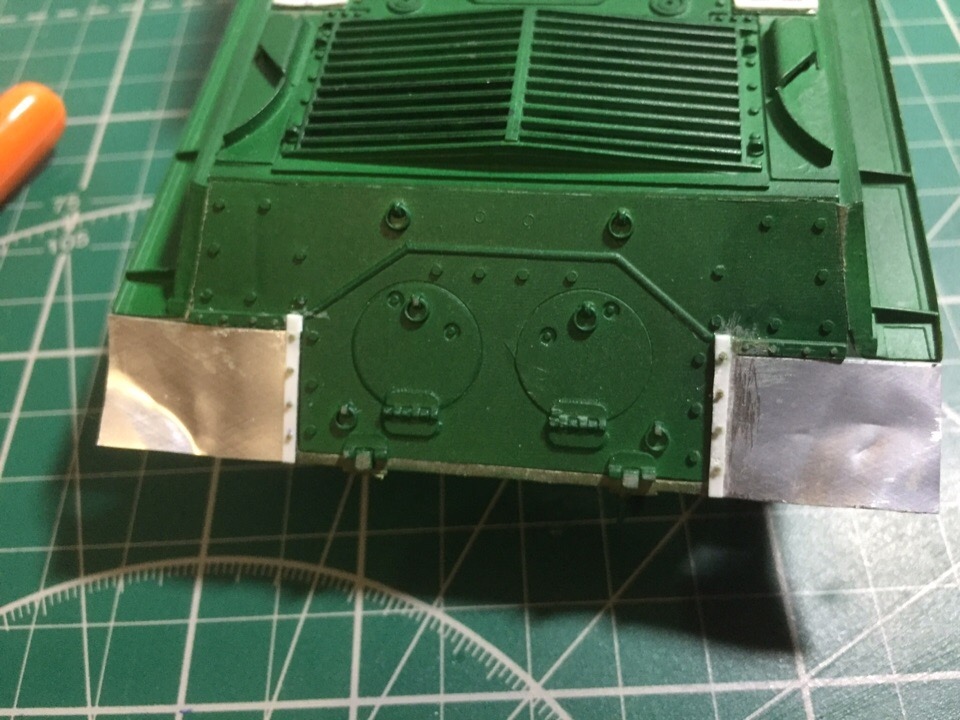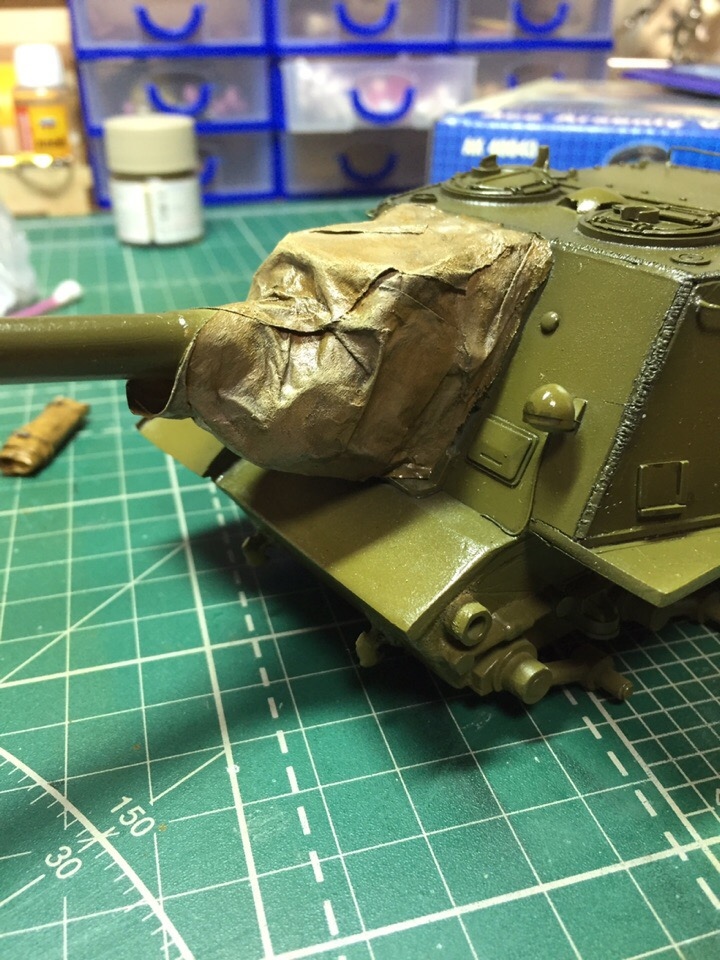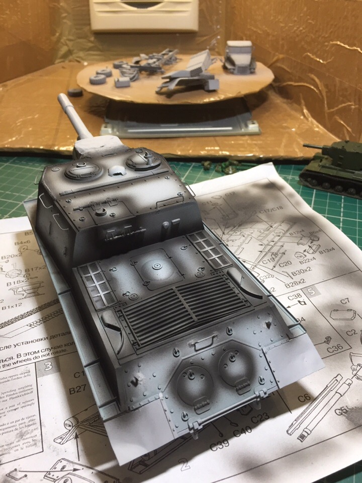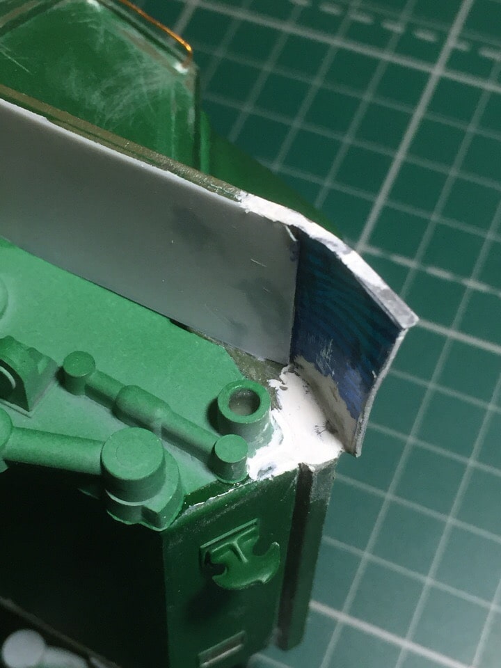Подшпаклевал и подшлифовал стык орудия. Над ним еще ведется работа, фото тоже не совсем достоверное, новое сделать еще не успел. Там добавились крючки.