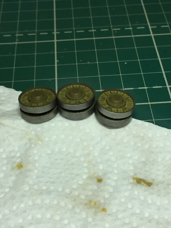 7,8. Соотв. части катков покрыты кистью, metallic gray от тамии (цвет не вспомню).