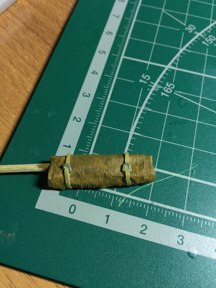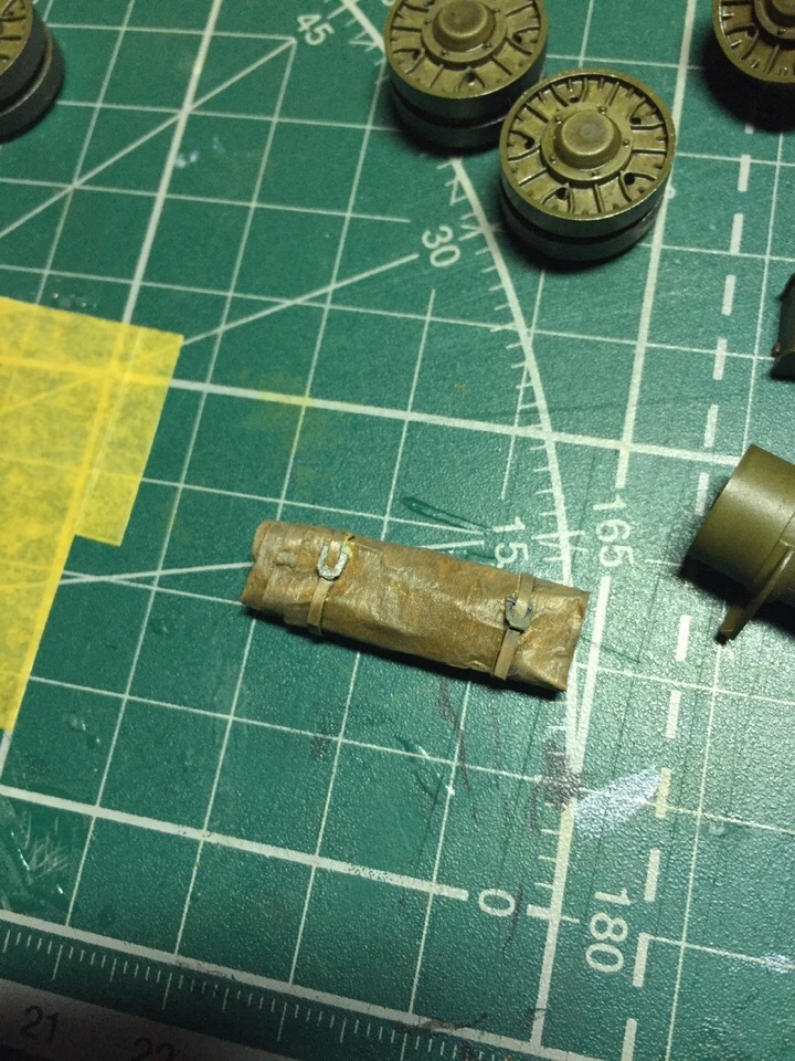 5. Скатка брезента окрашеная кистью акрилом от звезды, цвет тот же что и на брезенте маски орудия. Ремни самодельные, настолько самодельные насколько позволили мне мои кривые ручонки