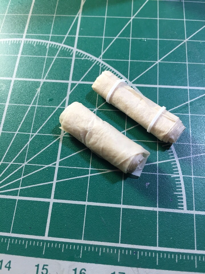 6. Скатка брезента задута в глянцевый тамиевский лак. Высветлялась тоже сухой кистью более светлого песочного цвета (тоже акрил от звезды).