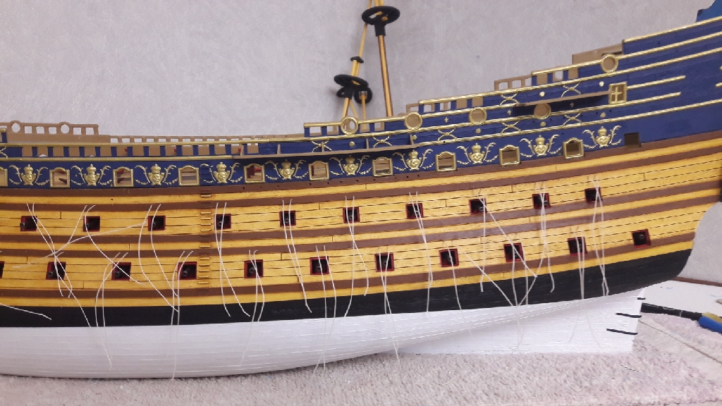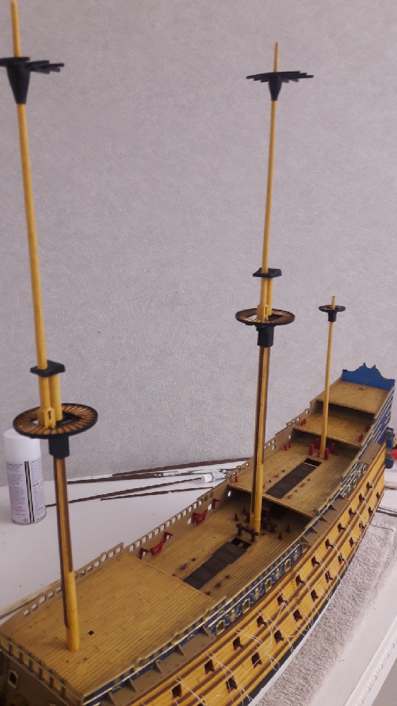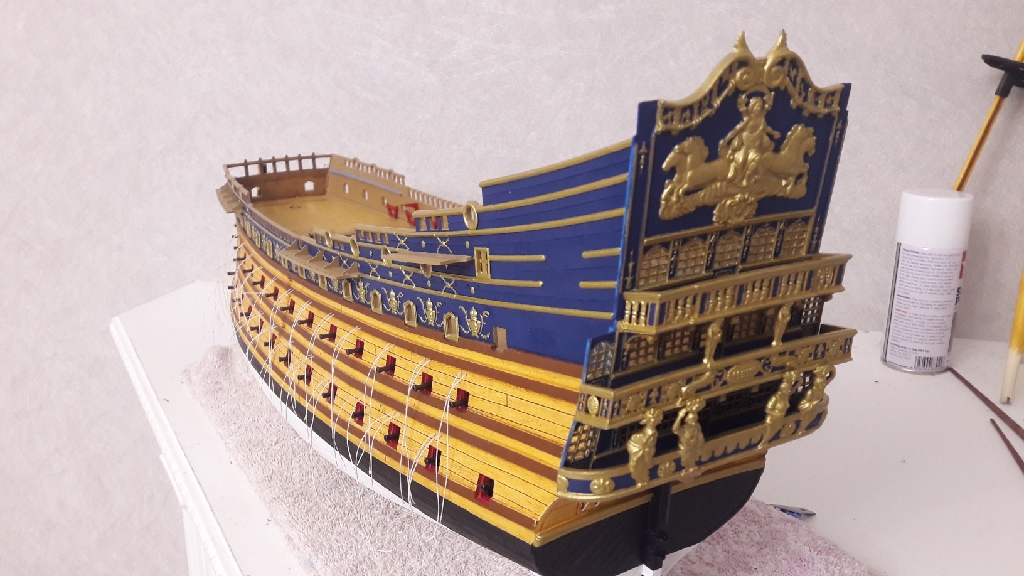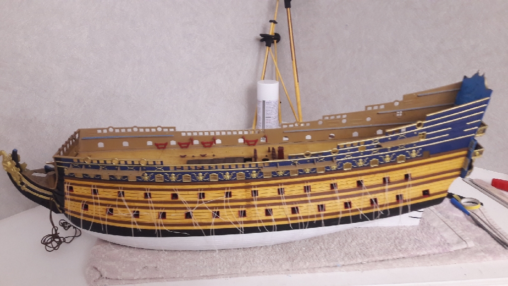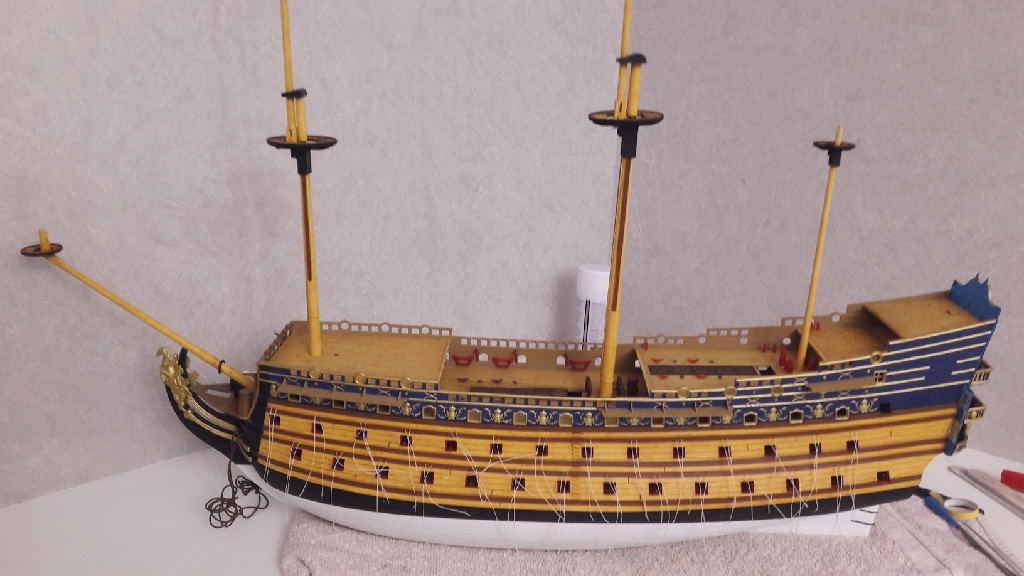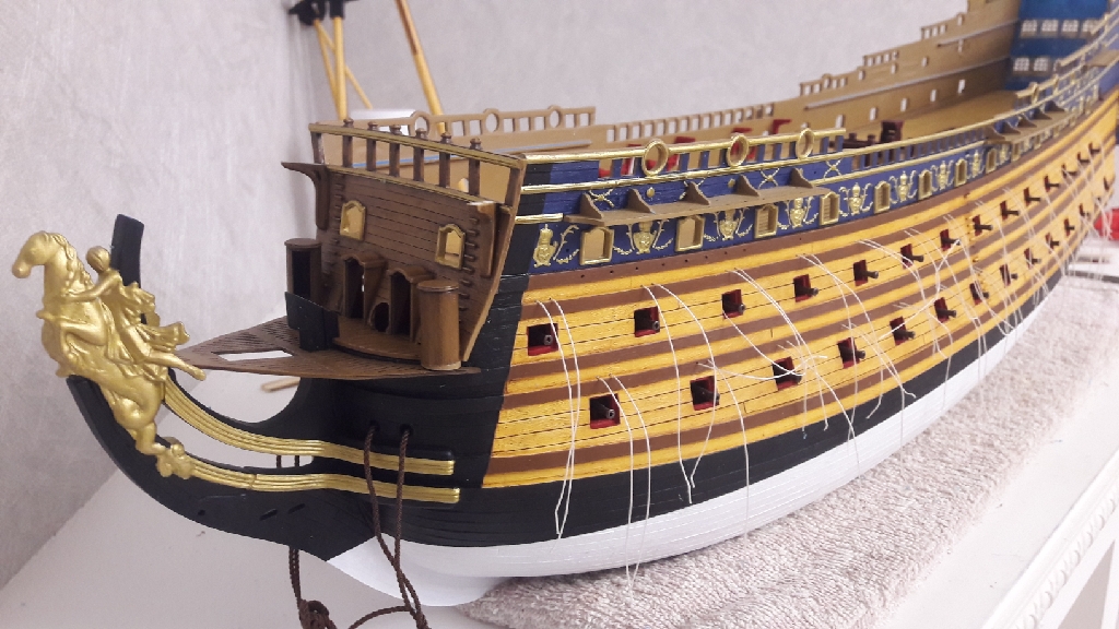 Модель долгострой, около трех лет. Вначале хотел собрать модель из коробки, но чес дальше тем больше переделывал или подгонял. Корпус перекрашивал несколько раз пока не добился того чего хотел. Некоторые детали подпортил вначале пока разобрался с химией. Нужен взгляд со стороны и подсказки как правильнее собирать дальше. Если нужны дополнительные фотографии говорите какие. Пока начну собирать пушки и баркасы.