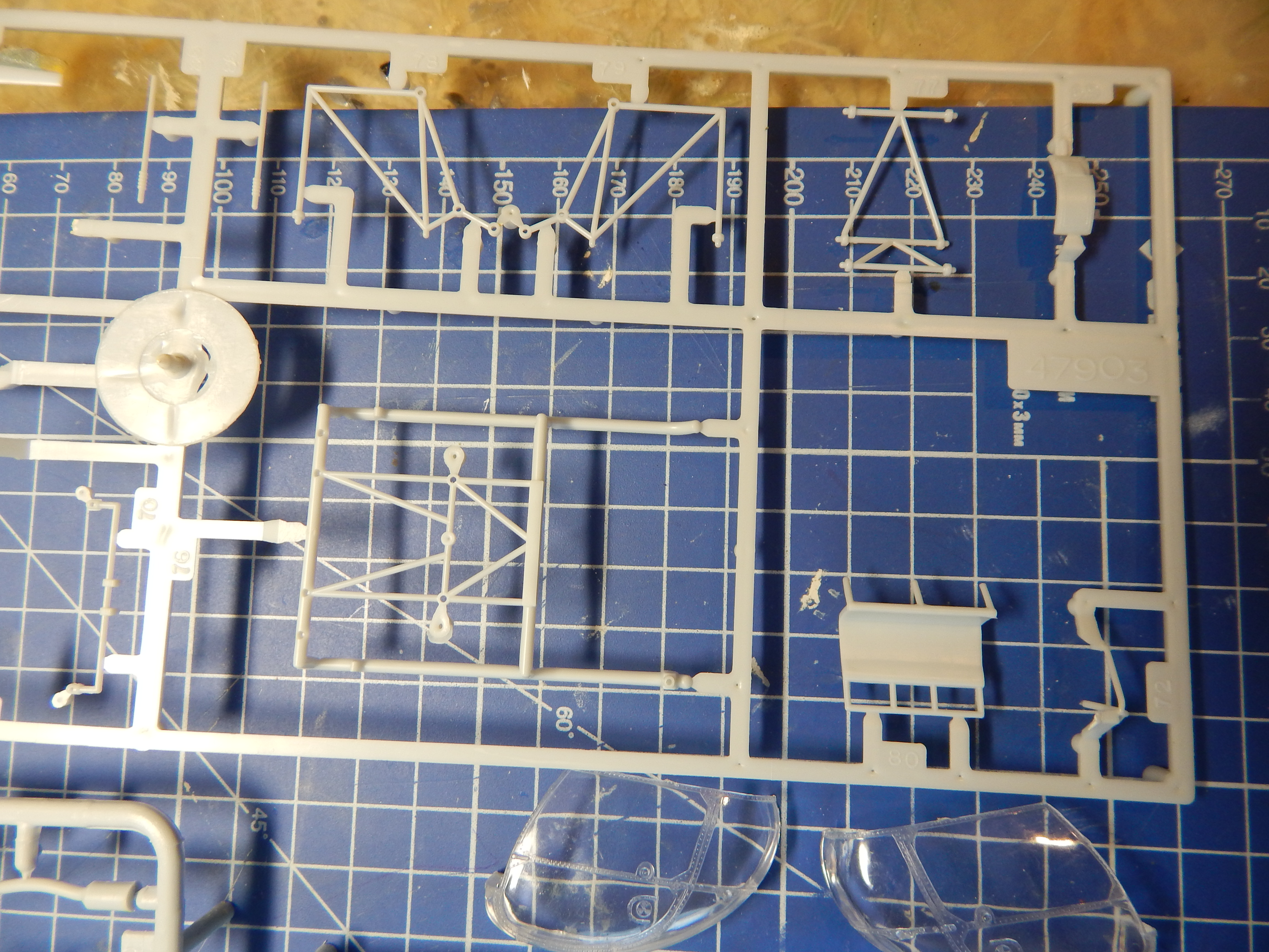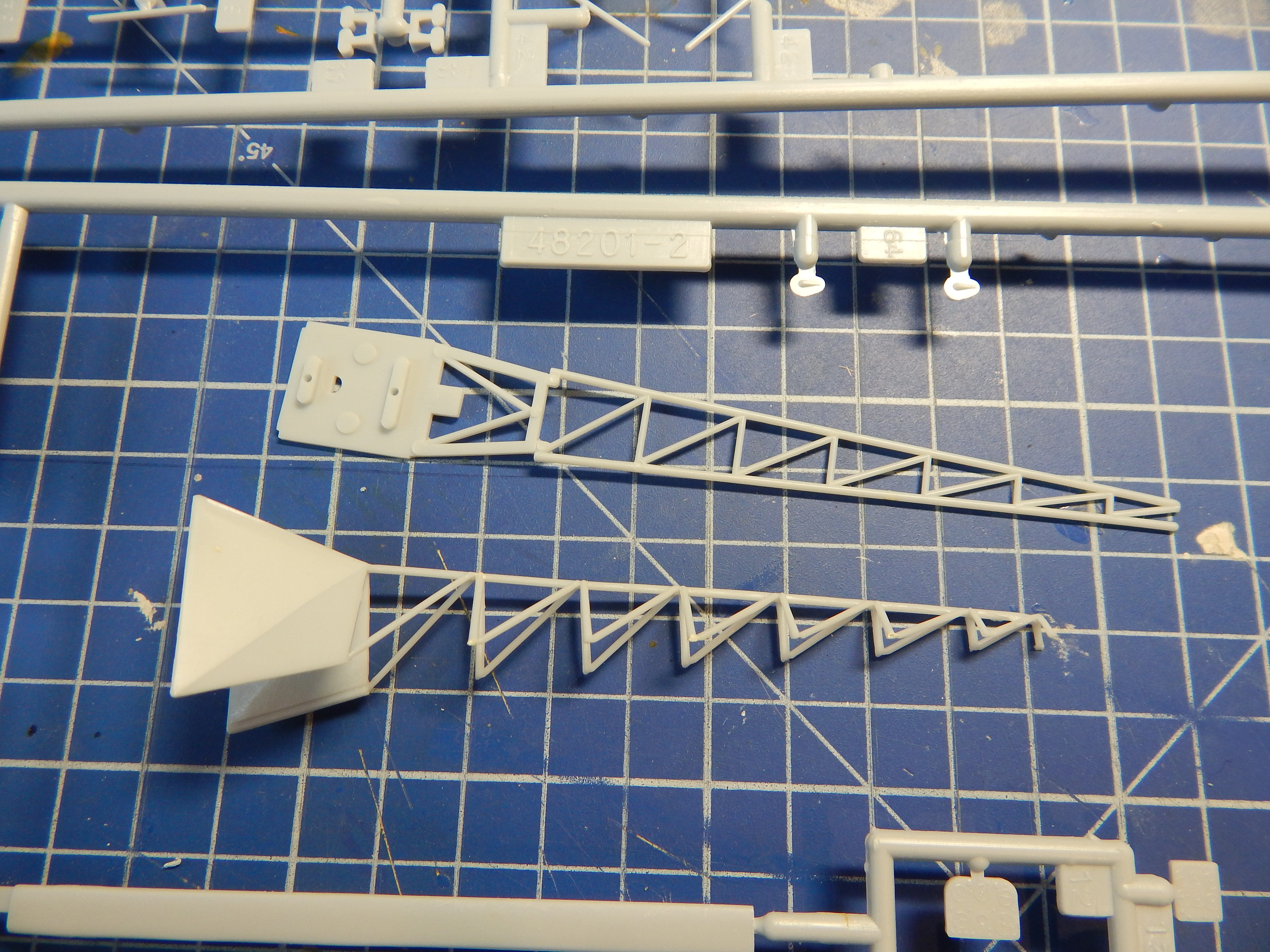Начал сборку на фане. Обработал и склеил хвостовую балку. Самое муторное - обработать облой на ферме. Его там было предостаточно - это же Heller.