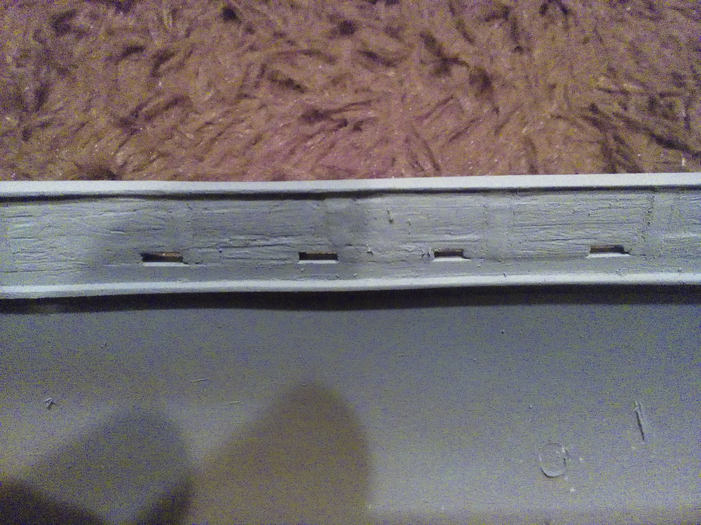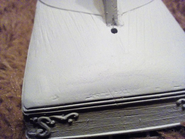 Малость подзатянул я с работами. До сих пор вожусь с исправлением косяков по корпусу, пытаясь сделать конфетку из известной субстанции. Помимо исправления нестыковки транца, а также шпаклевания щелей после вклейки бортовых вставок, обнаружил еще и косяки в литье - кое-где кривоватый планширь.