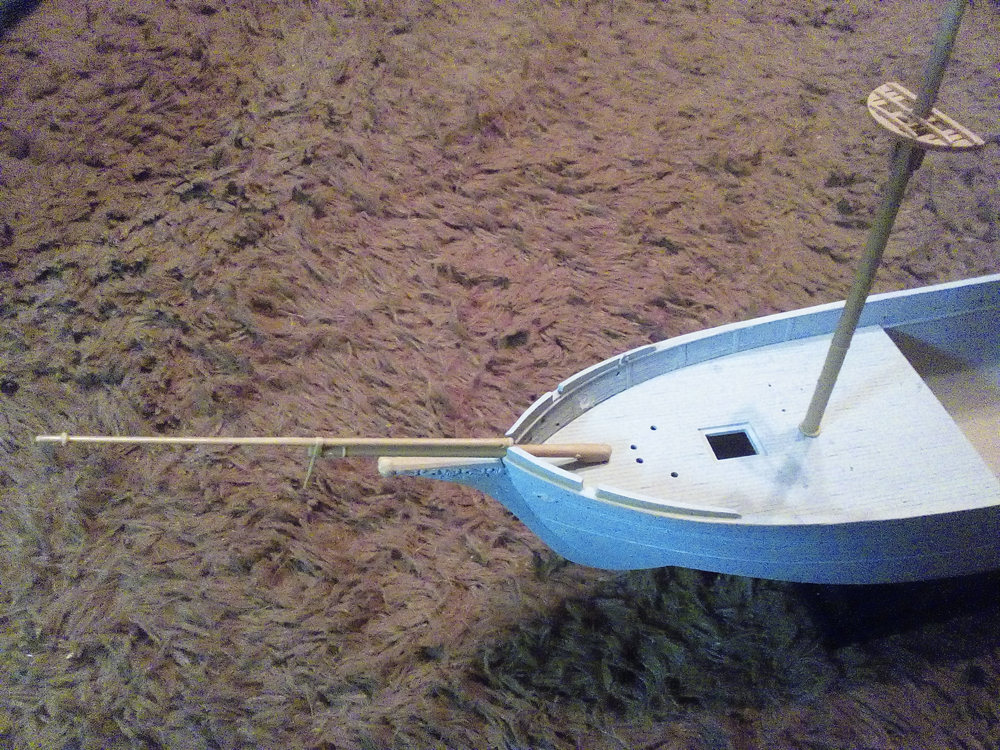 Также занялся исправлением известной ошибки с рулем, который надо перевернуть - отрезал и поменял местами ему штыри. Планирую также для руля сделать нормальные петли. Пока начал изготавливать румпель