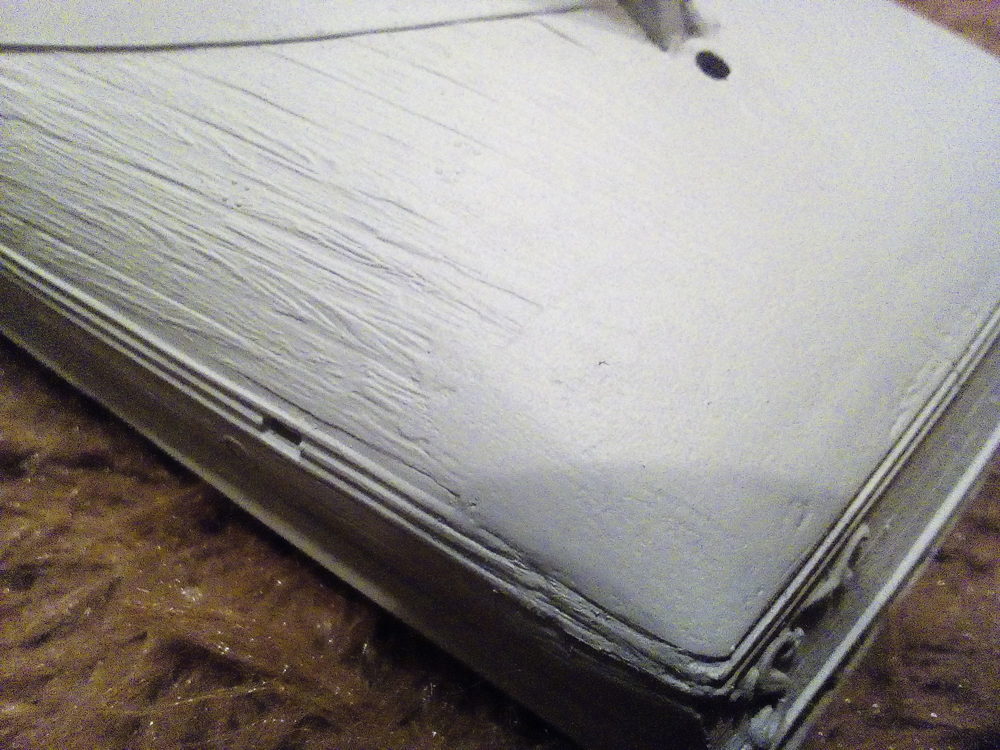 Пытаюсь исправить это при помощи шпаклевки, напильника, наждачки и какой-то матери. Шпаклевал уже два раза, и после грунтовал. Грунтовка очень хорошо вскрывает недочеты.