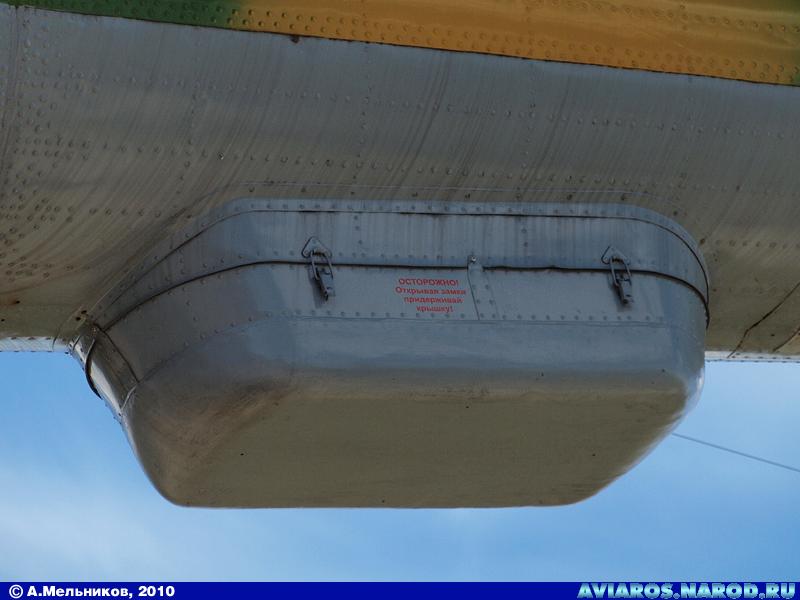 В моём случае, в контейнере ближе к створкам, находится самописец МС-61. Раньше в этих контейнерах располагался ДИВ. На поздних сериях Тэшек, магнитофон перенесли из верхней задней части фюзеляжа в этот блок для удобства обслуживания. Ближе к стабилизаторам, контейнер ЗБН БУР.