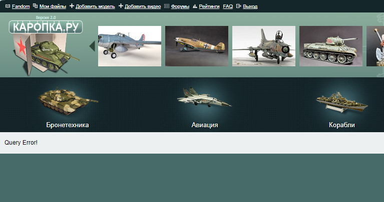 Поиск сайта (поиск по моделям) работает немного странным образом: при вводе в поисковую строку F-111 возвращает Query Error, т.е. исключение перехватываемое, но не совсем понятное.