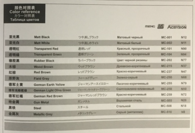 Попал мне в руки набор от MENG GERMAN ARMORED RECOVERY VEHICLE SD.KFZ.179 BERGEPANTHER AUSF.A. Столкнулся с проблемой, в таблице цветов в инструкции присутствуют производители красок с которыми ранее не встречался. Моделист начинающий, собирал ранее только пару наборов от звезды, аналоги звездовским краскам подбирал по таблице в интернете, брал краску фирмы тамия.
