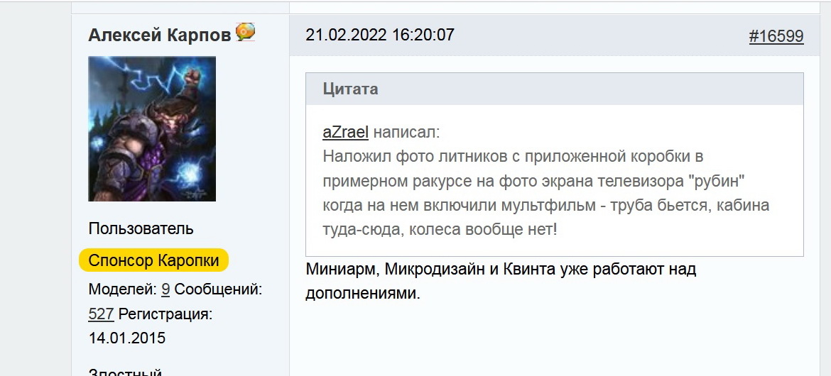 @Gamazkov написал:Может люди купившие заготовки под модели за бешенные деньги просто не хотят писать, что лопухнились или считают что дорогая модель оприори правильная.
