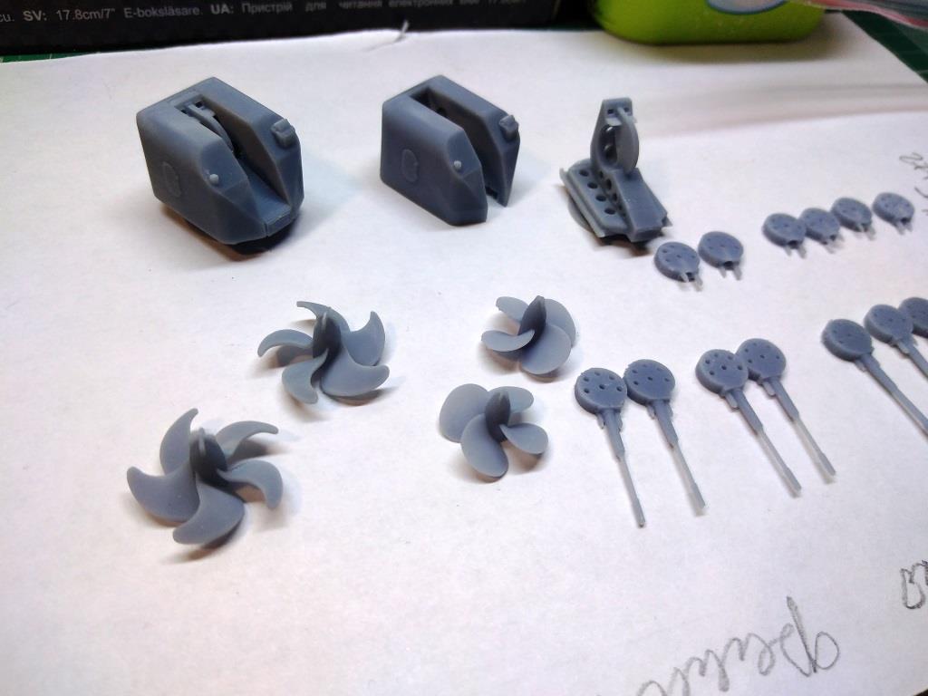 Получил от Военной миниатюры винты на СКР пр.1135, подводную лодку пр.667 БДРМ и артиллерийские башни АК-726. Качество меня полностью удовлетворило. Спасибо Парус3D и Военной миниатюре за работу. Жду продолжения! Торпедные аппараты будут скоро?