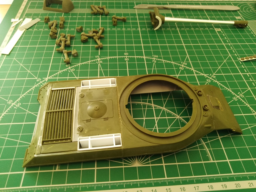 С прототипом пока не определился , но на 99% будет Мариупольского завода (из-за каллиграфического номера на корме башни ). Я понимаю , что придется делать граненую башню , но в планах она. Работы еще выше крыши , занимаюсь полностью низом , верхнюю часть пока не трогаю больше . Про шов я в курсе , была попытка сделать шов - и решил попробовать там , занимался как раз переносом люка мех.вода