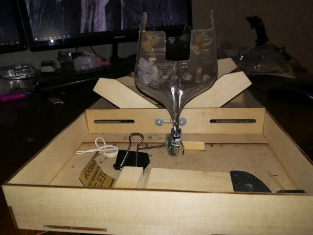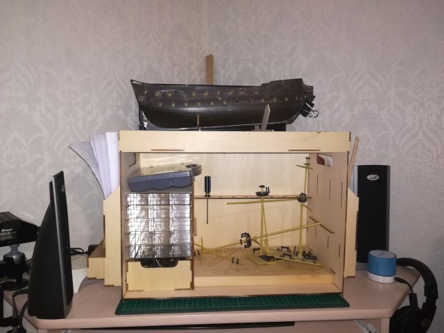 Которая в дальнейшем ,при помощи инструкции с вездесущего видеохостинга, превратилась во вполне себе неплохой рундук моделиста. В который были погружены части многострадальной готы, чертежи ,кое какие склянки и мелочевка
