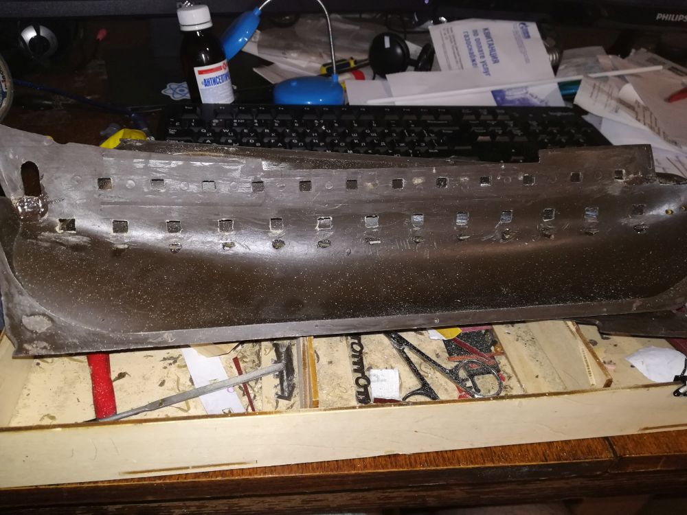- срезал наплывы под кормовыми раковинами. Так как палубы в общем будут опущены на 2-3 мм то и раковины придется опускать, тем более что они действительно задраны слишком высоко даже с оригинальной высотой палуб.