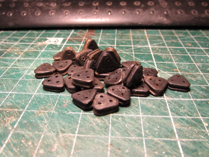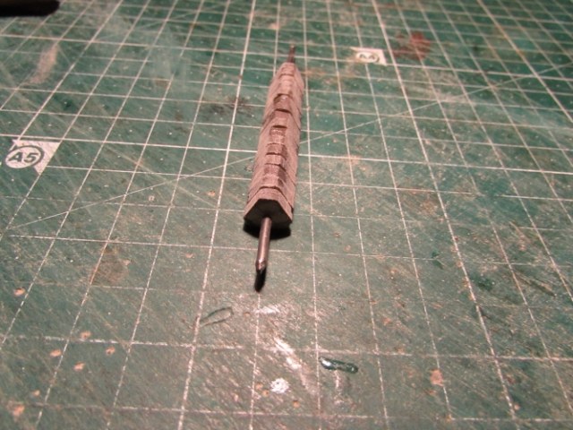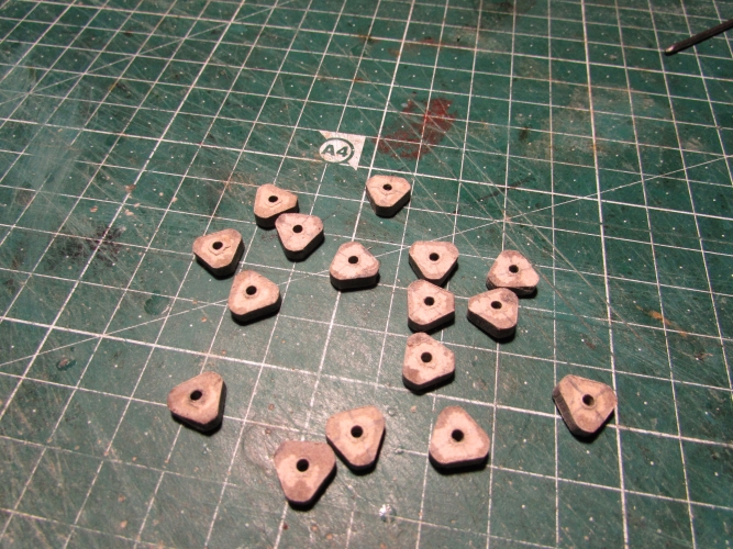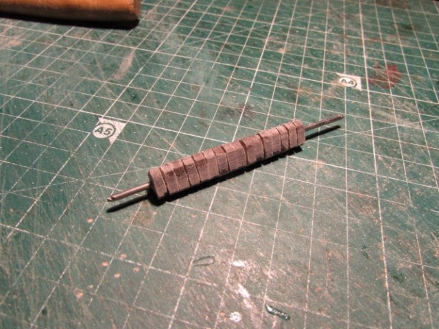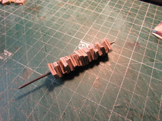 Теперь поподробней, расчерчиваю и вырезаю квадратики ( у меня 1 см) нанизываю на проволку и обтачиваю ( фото обточеных потерялось).