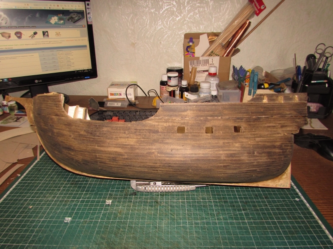 Использую на палубе и шлюпку собрал также, на следующей работе и корпус буду делать также.
