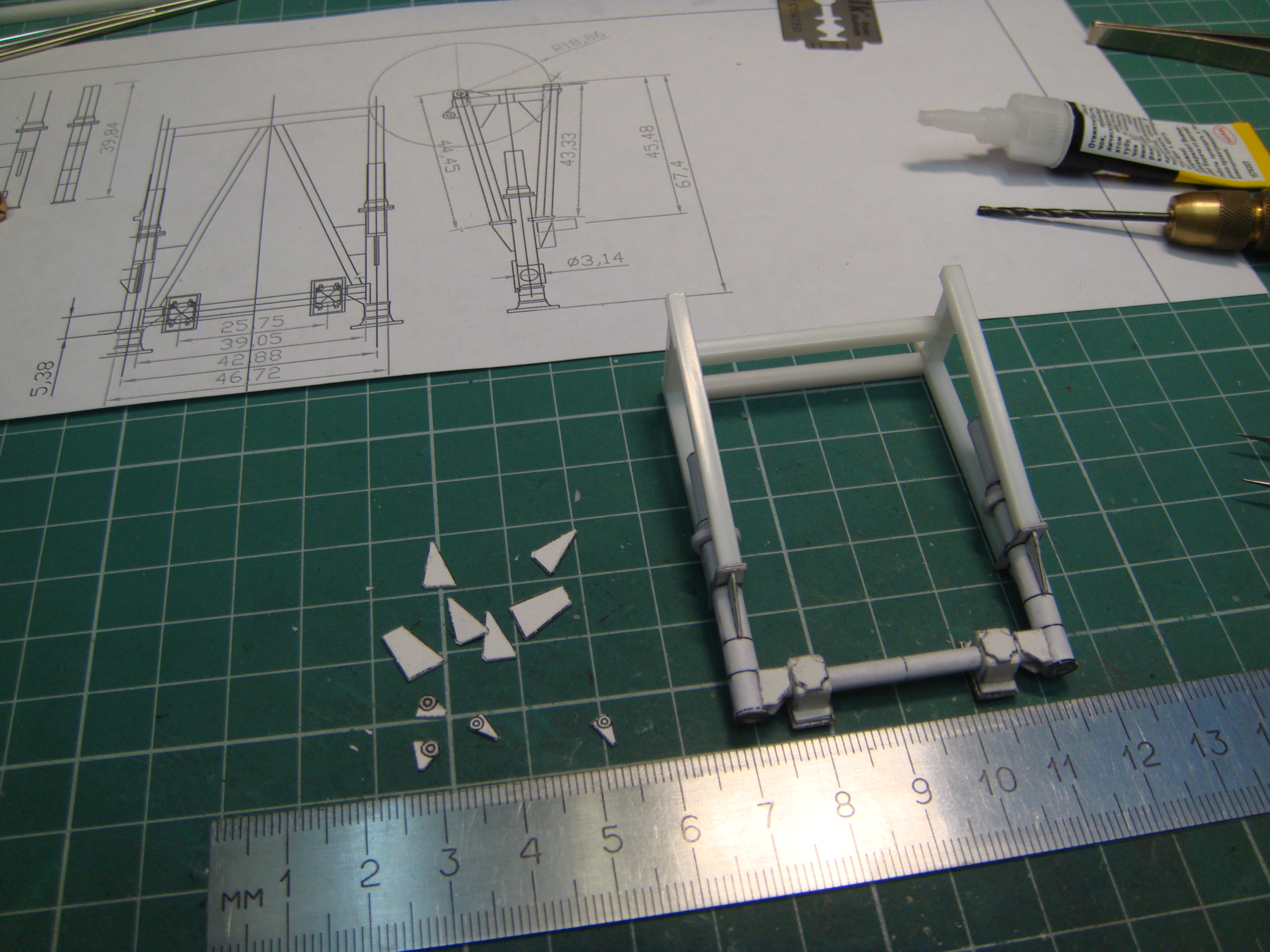 Для изготовления мачты сделал что-то на подобие стапеля. В ход пошли рейки от Tamiya 2х2 мм, иглы.