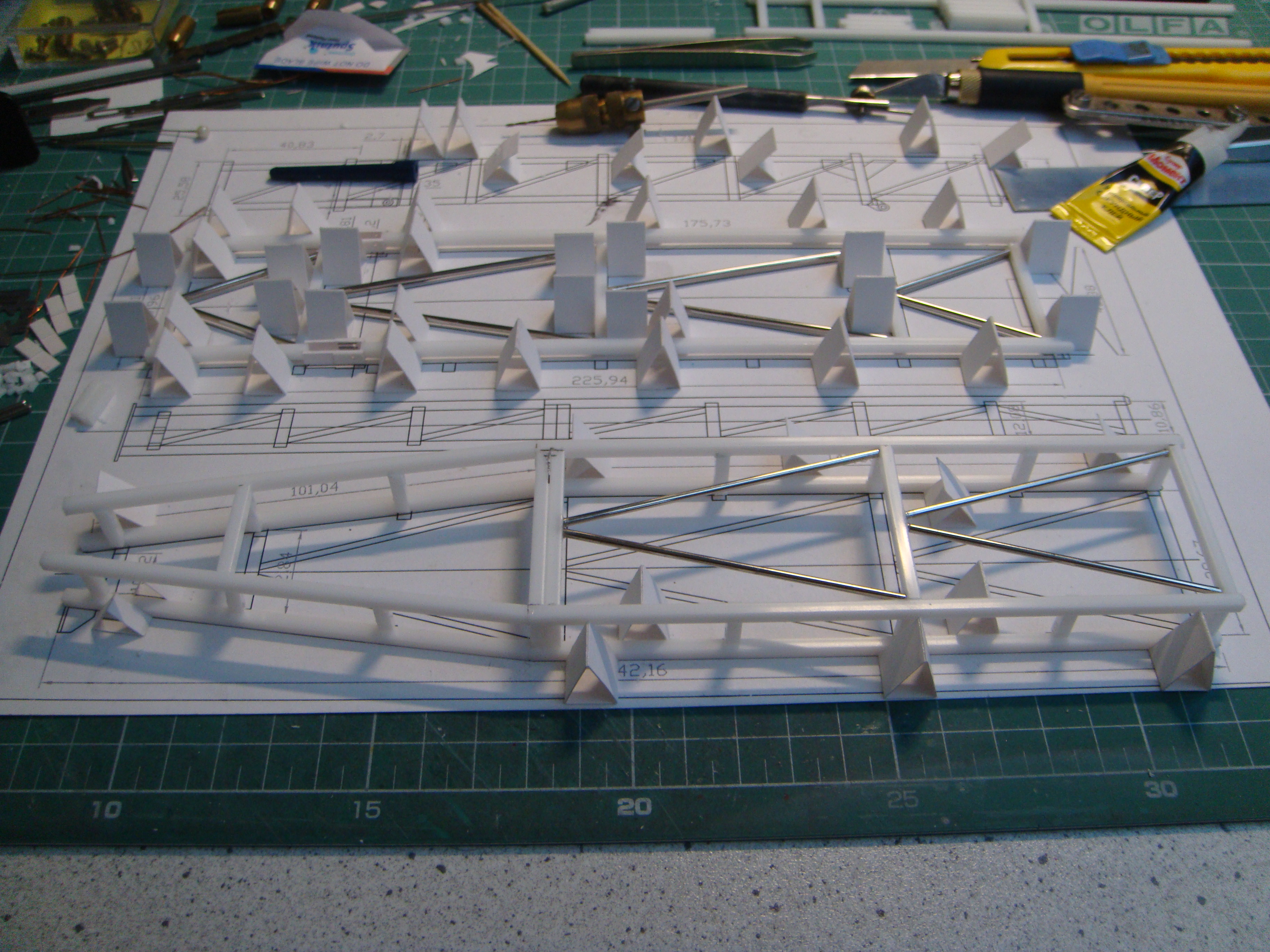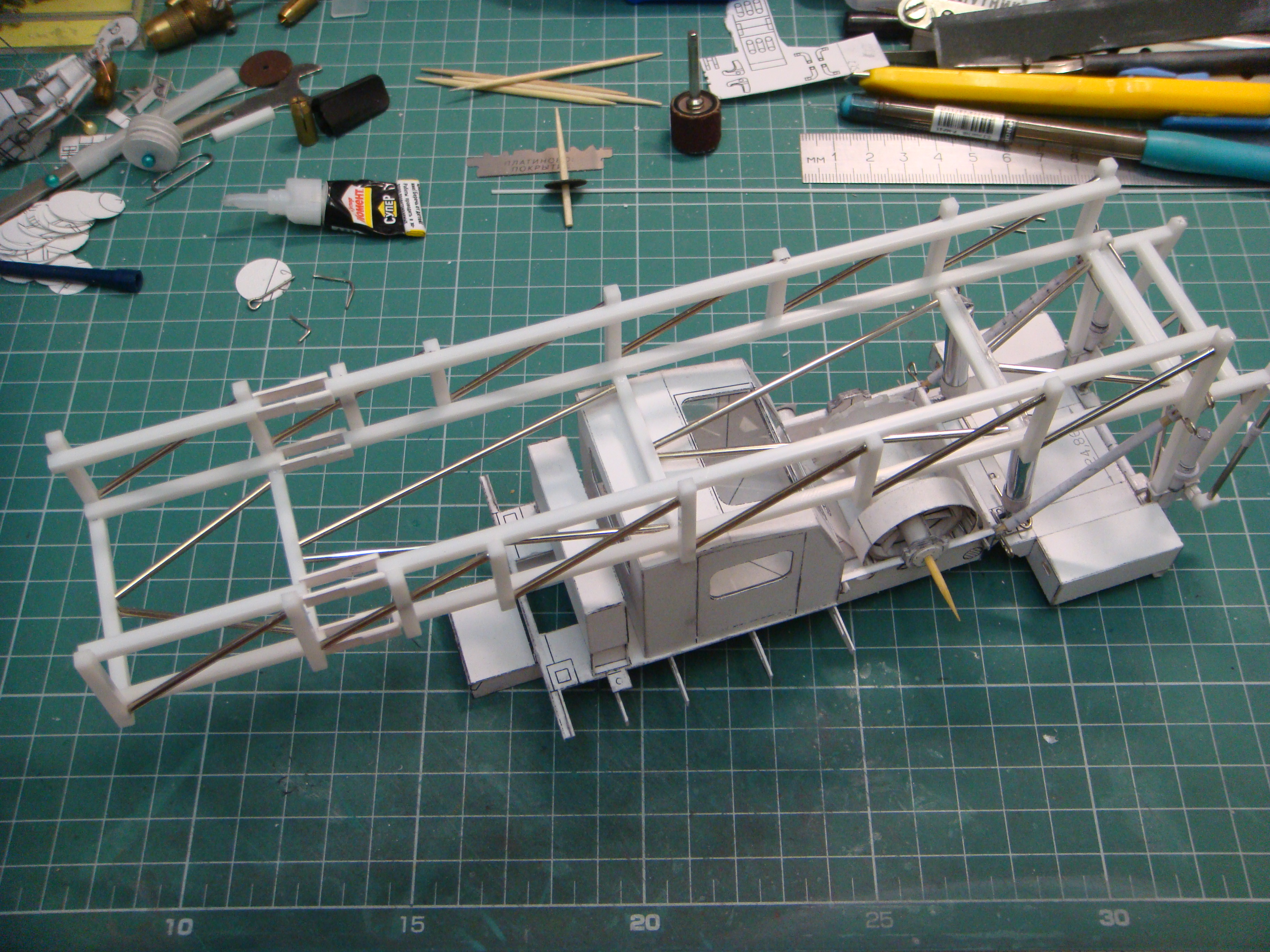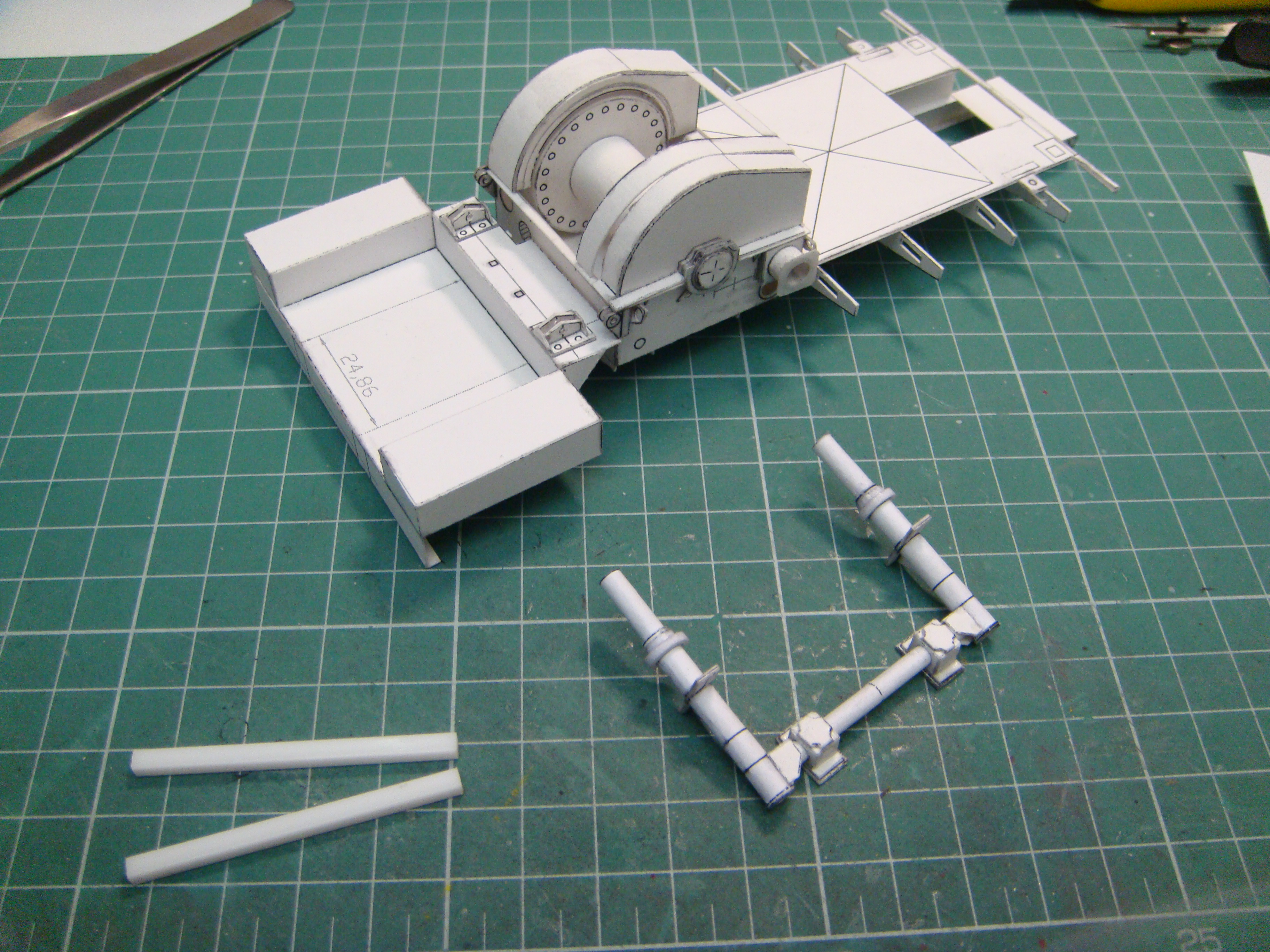 Затем рама палубы, палуба. Все из бумаги пропитанной цианокрилатом. Развертки основных узлов уже были – возни было не очень много.