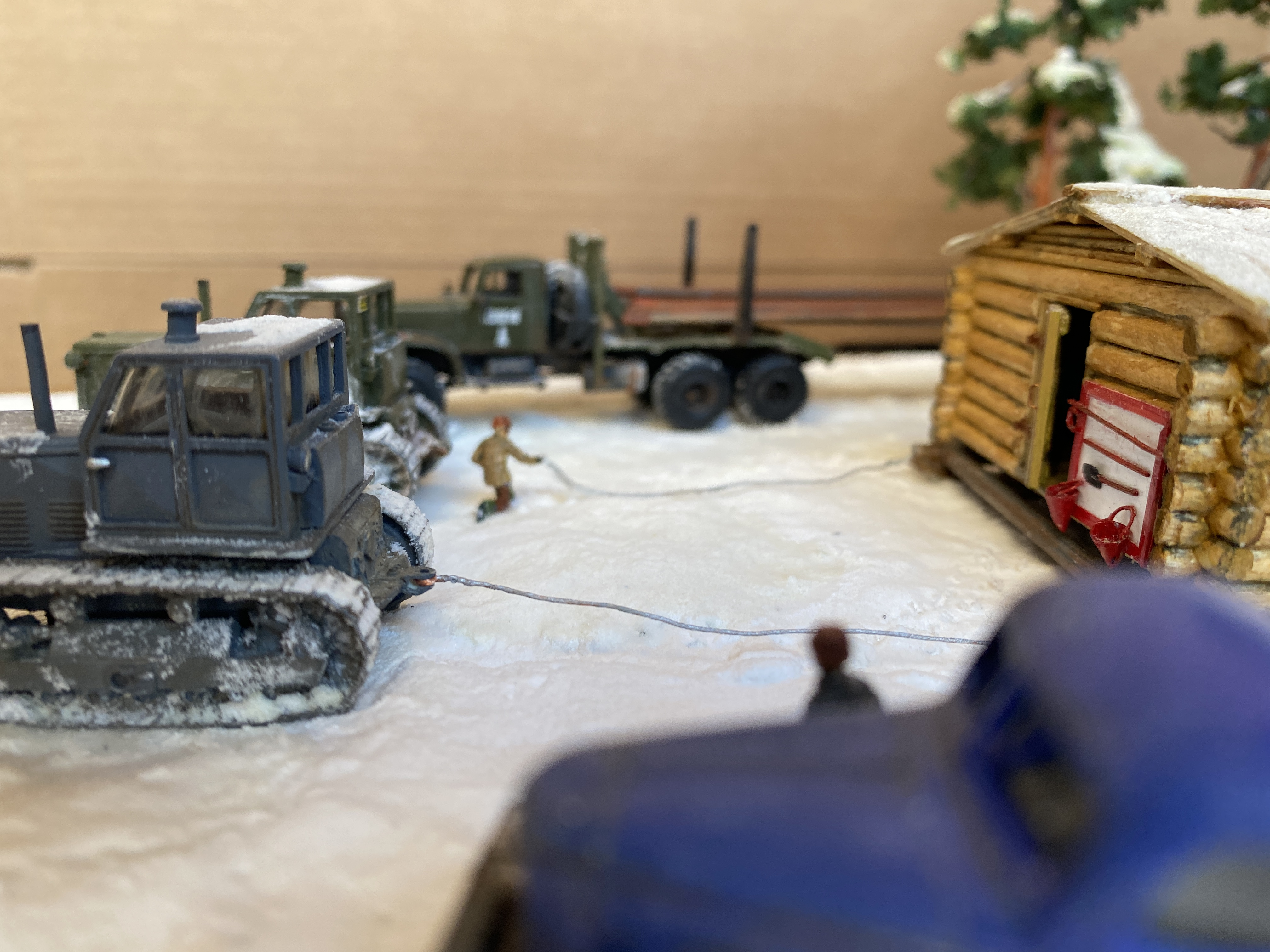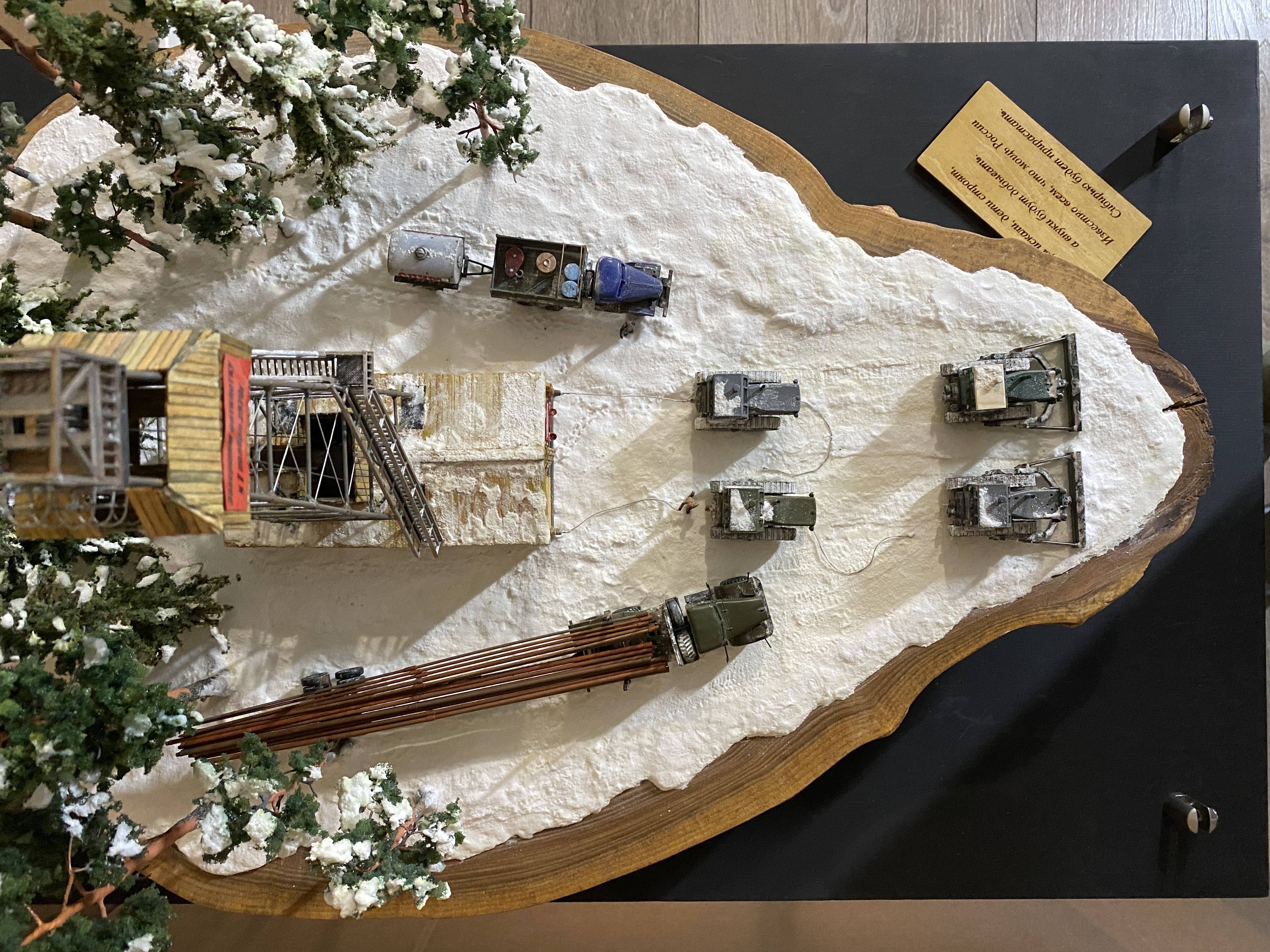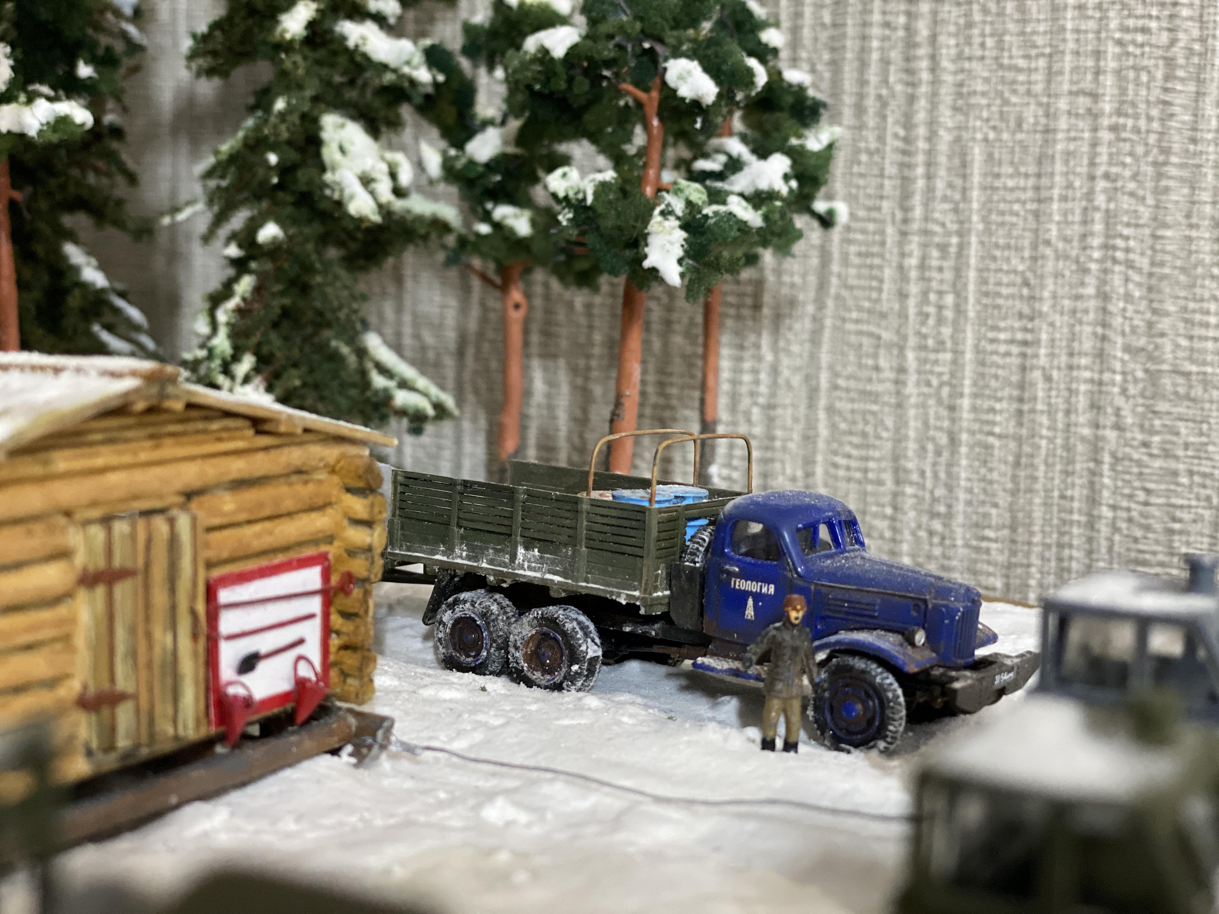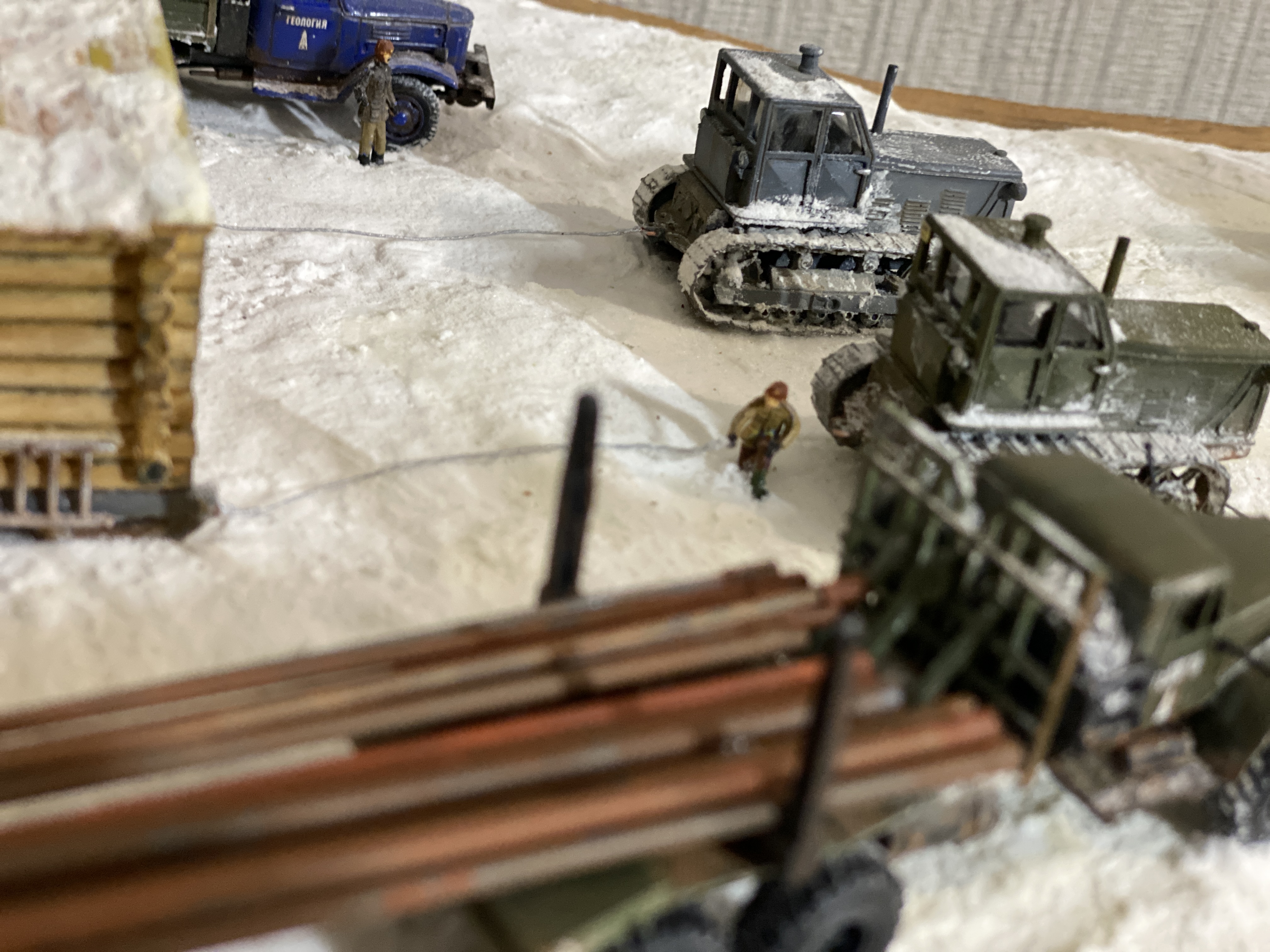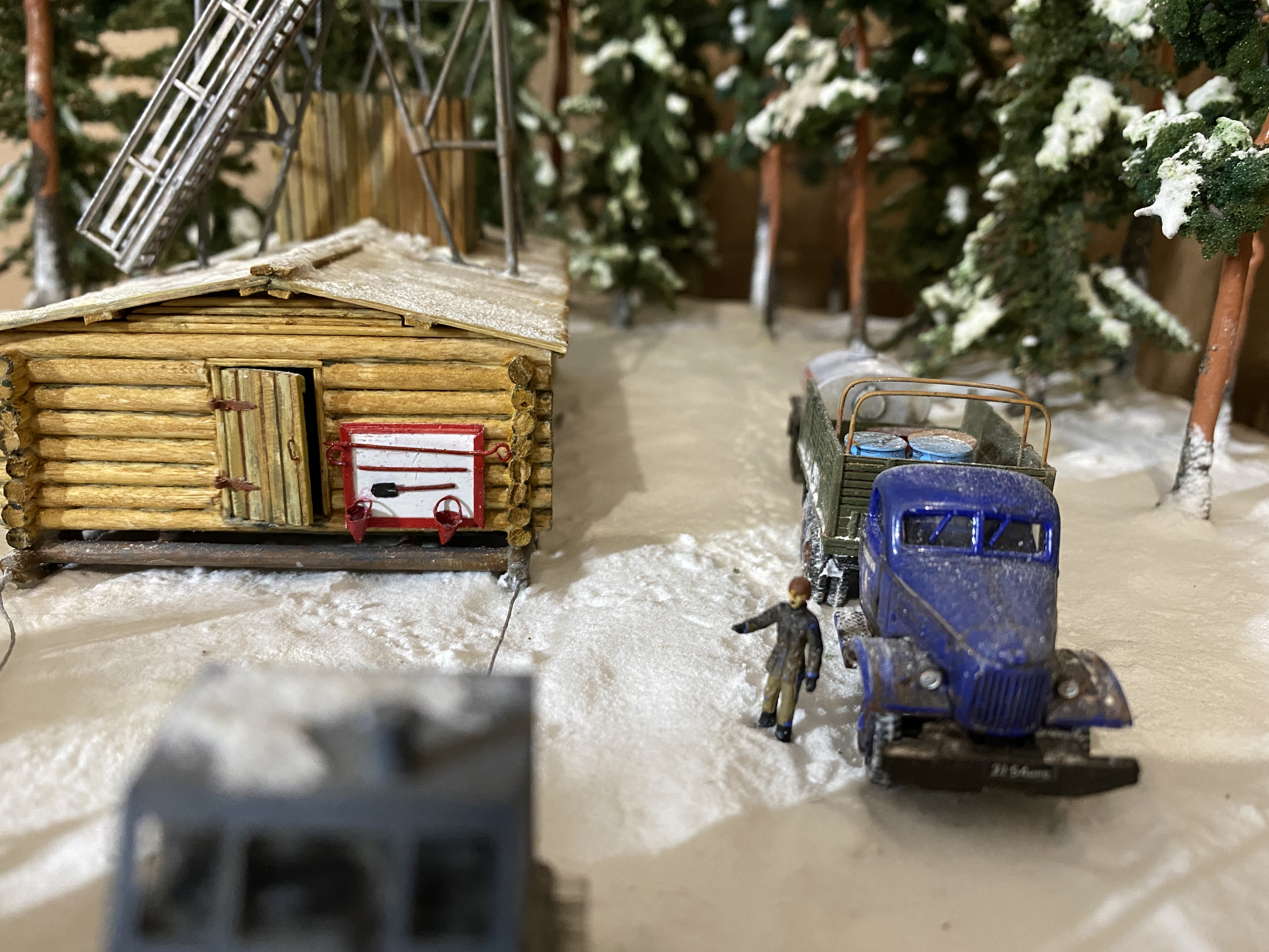 Самое сложное для меня было, как ни странно это снег, он то желтел на основании, то зеленел на деревьях, задолбался искать нужные пропорции, перепробовал три разных клея, в итоге остановился на пва титан для древесины. Сама буровая выполнена из шпажек, вышка из материалов от zip maket. Косяков конечно же хватает, снег (сода) падла, на второй день, всё-таки местами впитала зелень от деревьев, корректировал белой краской, скорей всего позже надо будет опять пройтись. Краски, пигменты, смывки почти все от тамии. Учился по роликам из ютуба) По ходу сборки понял, что «замахнулся я конечно на самого Шекспира», но заднюю уже было поздно врубать, т.к. обещал коллегам и сам же предложил идею. Видел работы в галлереи Каропки, понимаю, что есть куда стремится, работы просто супер!