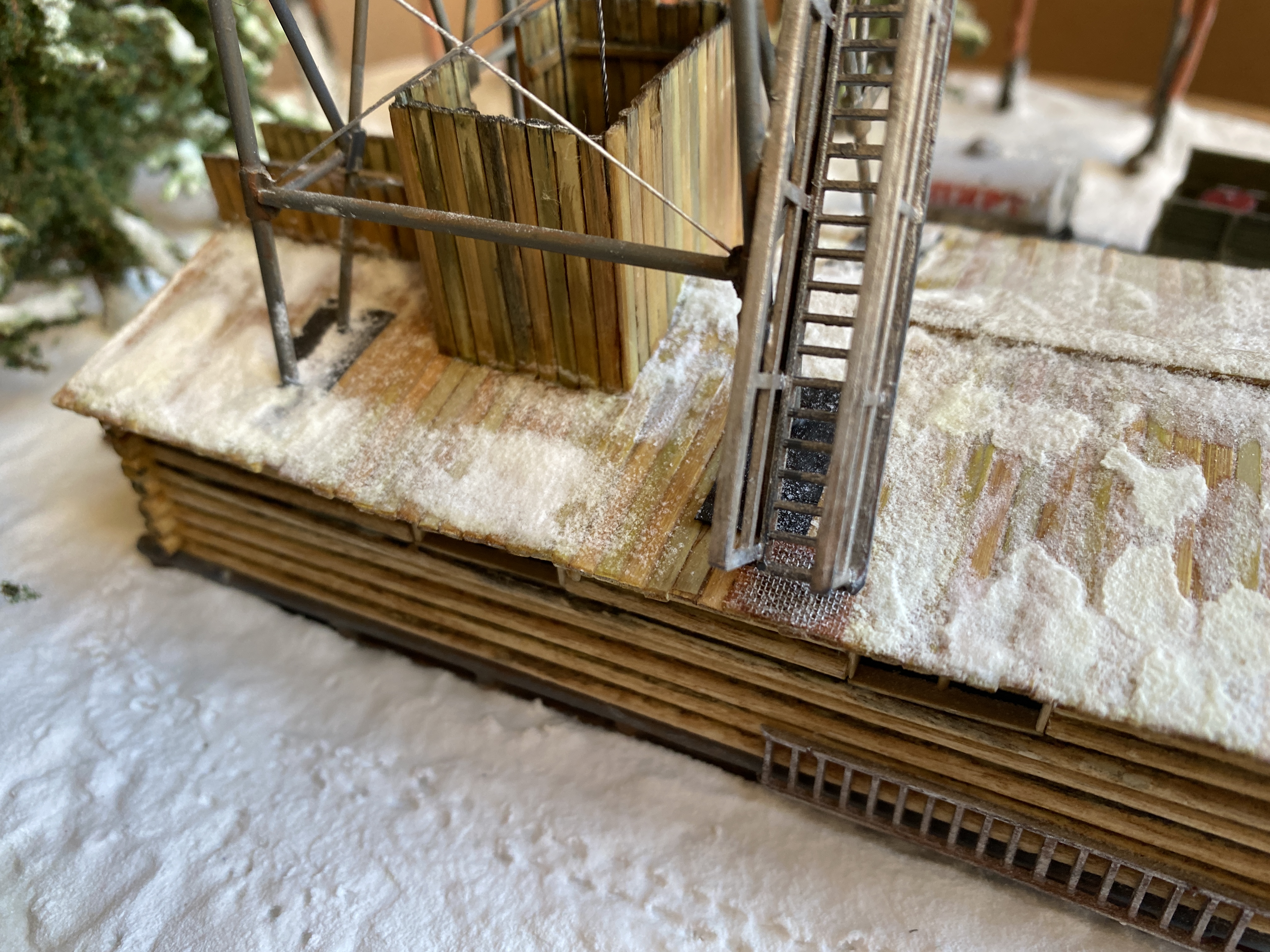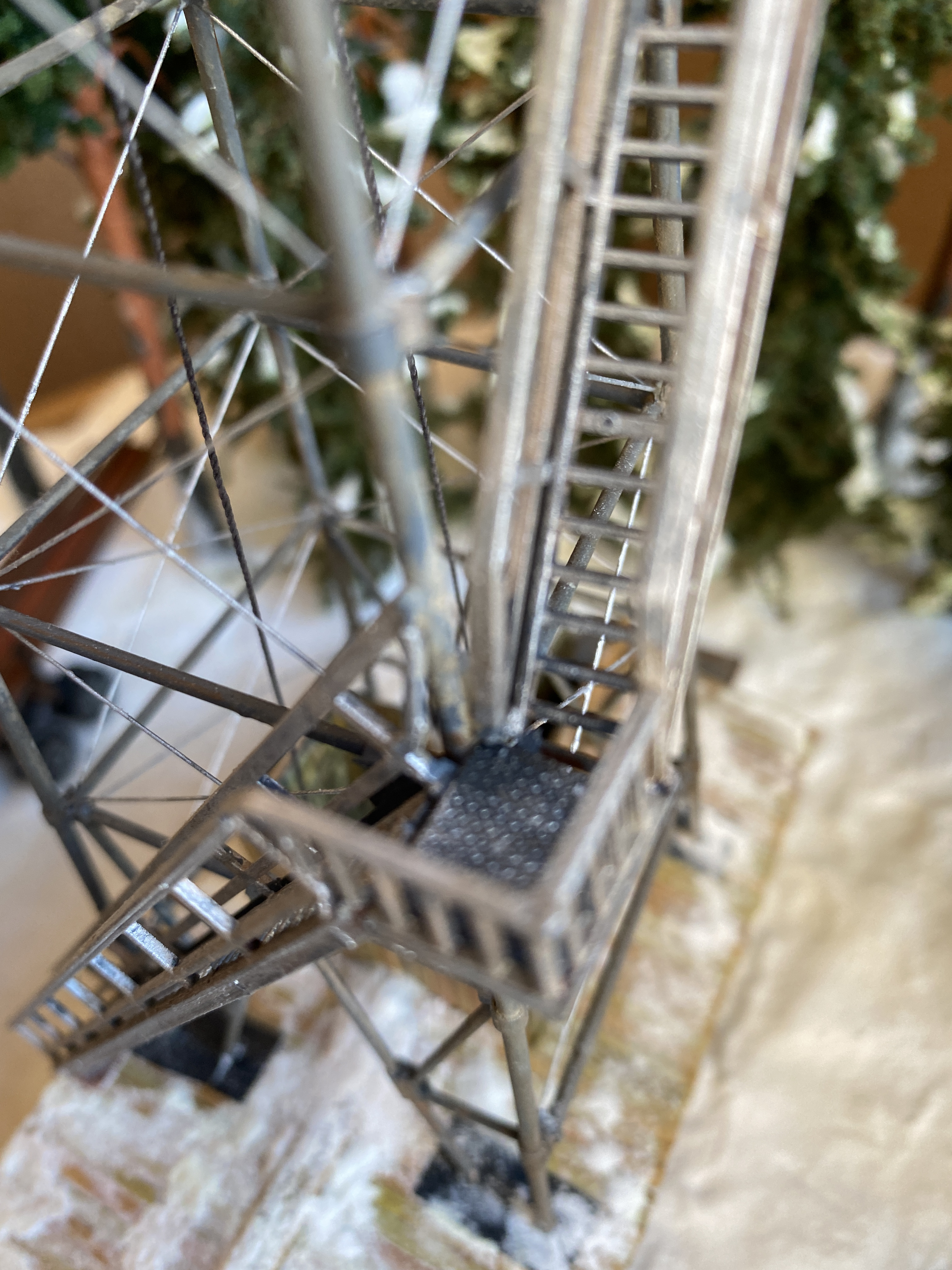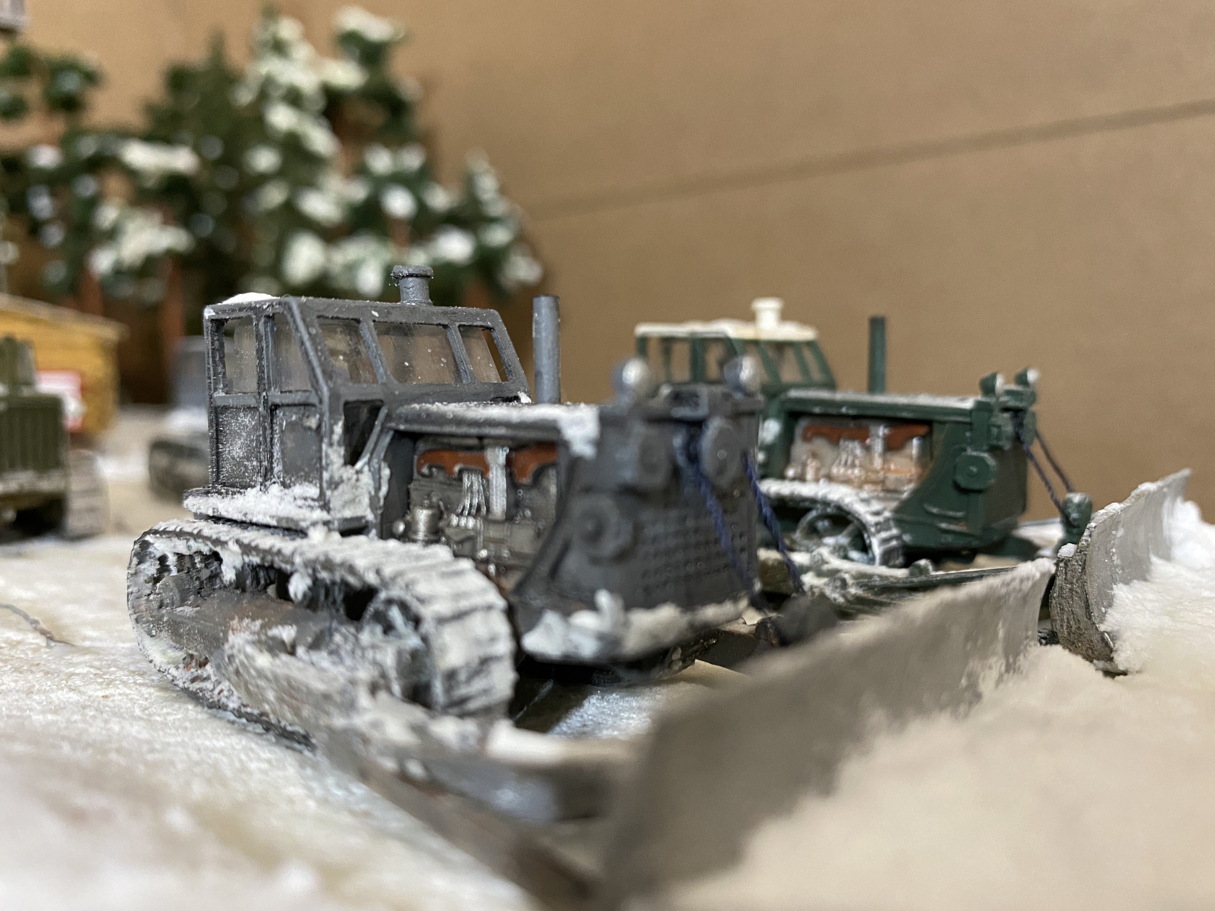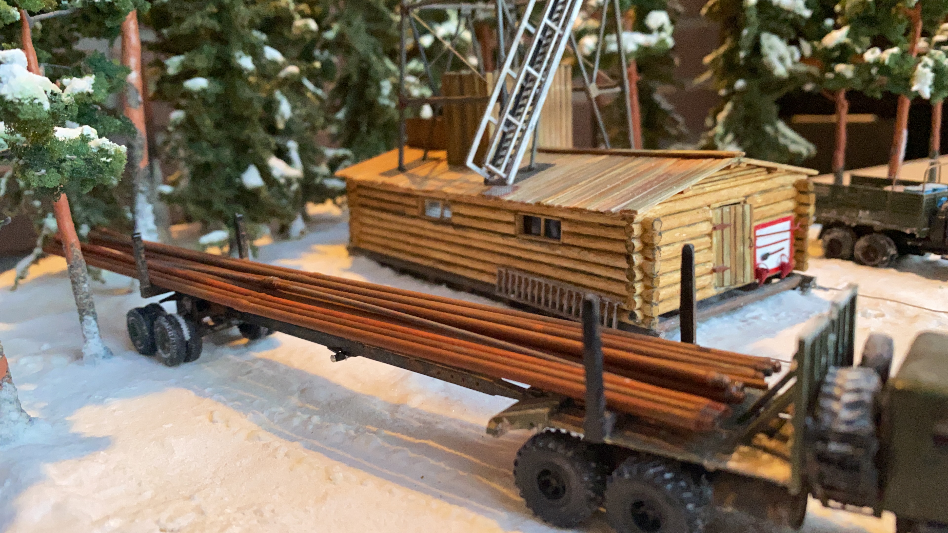 Самое сложное для меня было, как ни странно это снег, он то желтел на основании, то зеленел на деревьях, задолбался искать нужные пропорции, перепробовал три разных клея, в итоге остановился на пва титан для древесины. Сама буровая выполнена из шпажек, вышка из материалов от zip maket. Косяков конечно же хватает, снег (сода) падла, на второй день, всё-таки местами впитала зелень от деревьев, корректировал белой краской, скорей всего позже надо будет опять пройтись. Краски, пигменты, смывки почти все от тамии. Учился по роликам из ютуба) По ходу сборки понял, что «замахнулся я конечно на самого Шекспира», но заднюю уже было поздно врубать, т.к. обещал коллегам и сам же предложил идею. Видел работы в галлереи Каропки, понимаю, что есть куда стремится, работы просто супер!