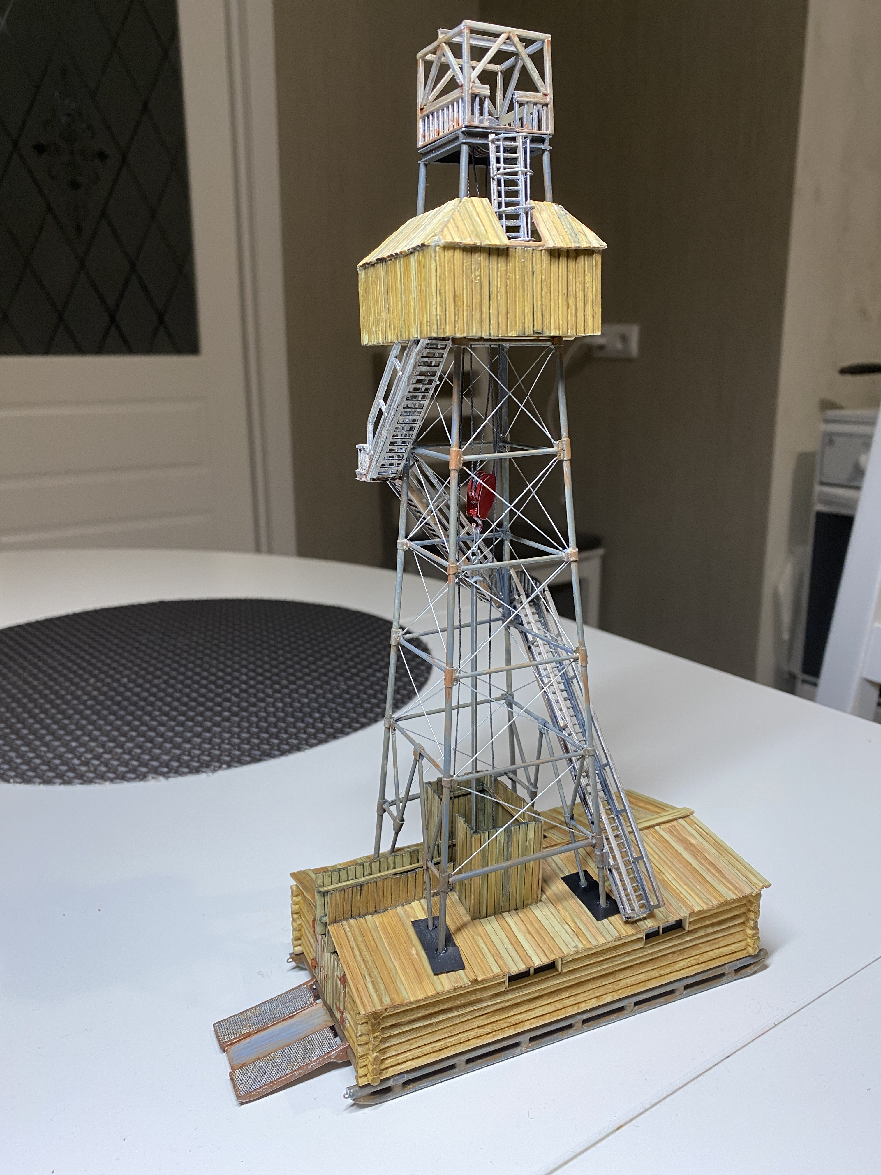 Спасибо! Нет из металла не решился, хотя приобрёл все для этого, но времени на тренировку в пайке латуни не хватило бы, да сложнее там все . А материал использовал от zip maket трубы, двутавры и пр. Буровое здание от «сезона» шпашки)
