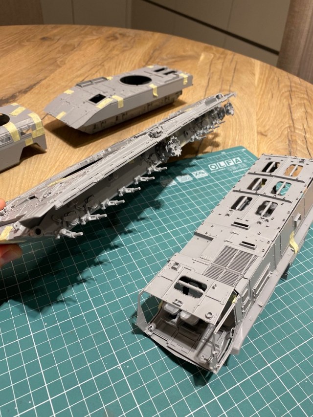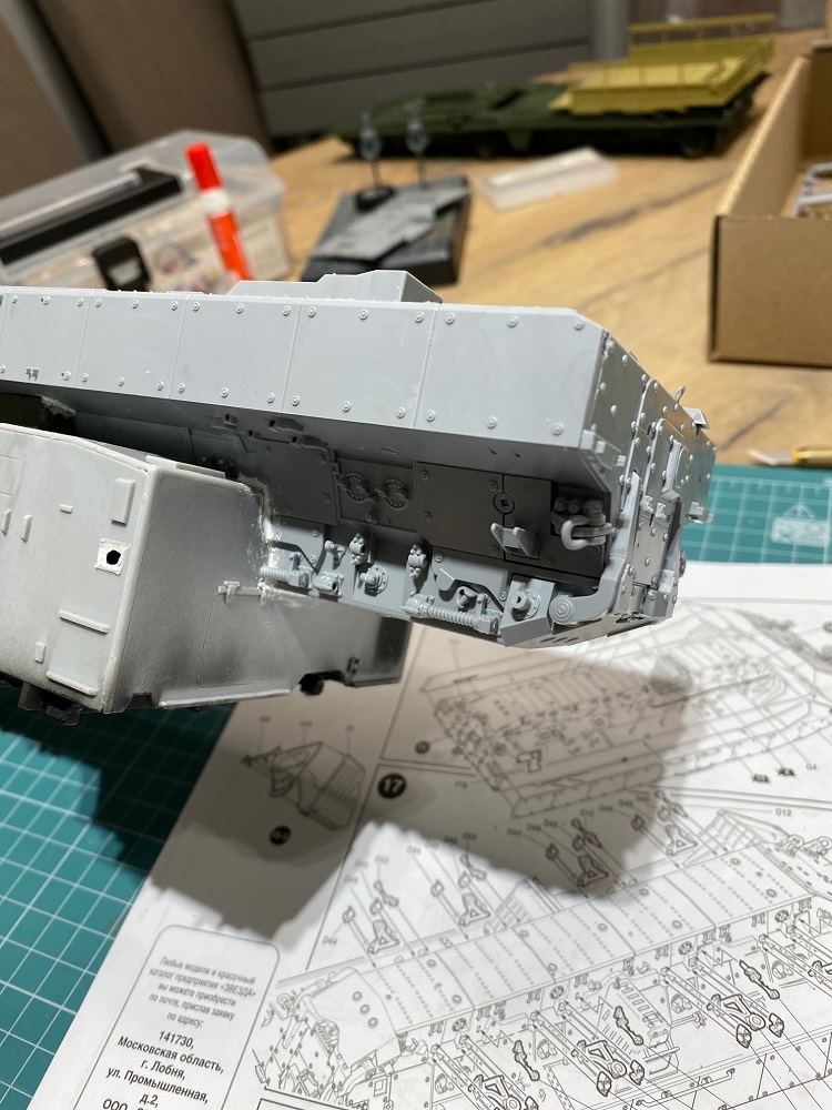 Сростить два корпуса Т-90 оказалось не сложно. Первый раз работал шпатлевкой и это был ад. Но вышкурил все стыки, и в итоге доволен результатом.