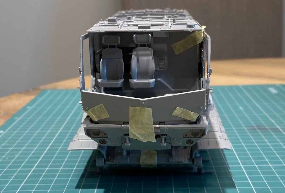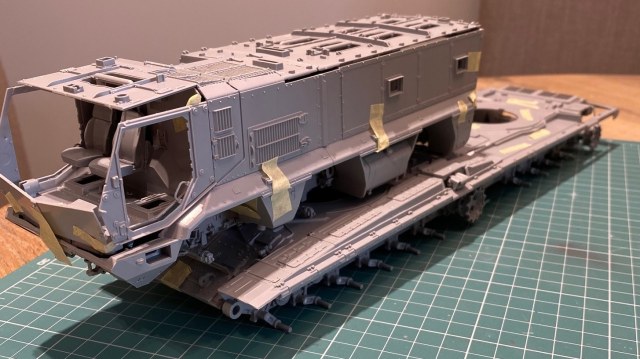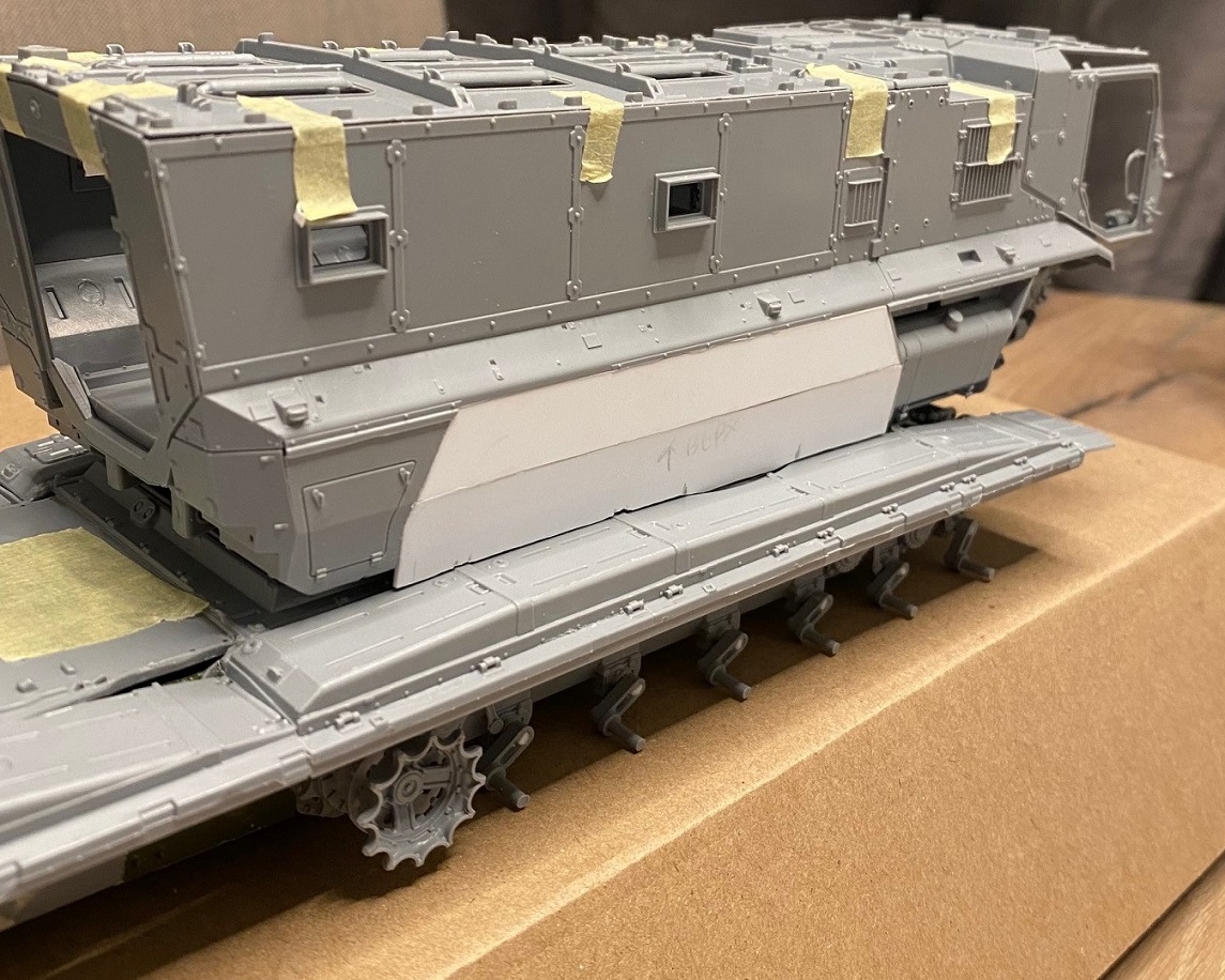 Средние зашить листом и имитировать сварной шов. А вот передние... нужно придумать некий трап от двери Тайфуна до бортовых полок базы, по которым персонал мог бы ходить (там я планирую поручни и двери в кунге в конце).