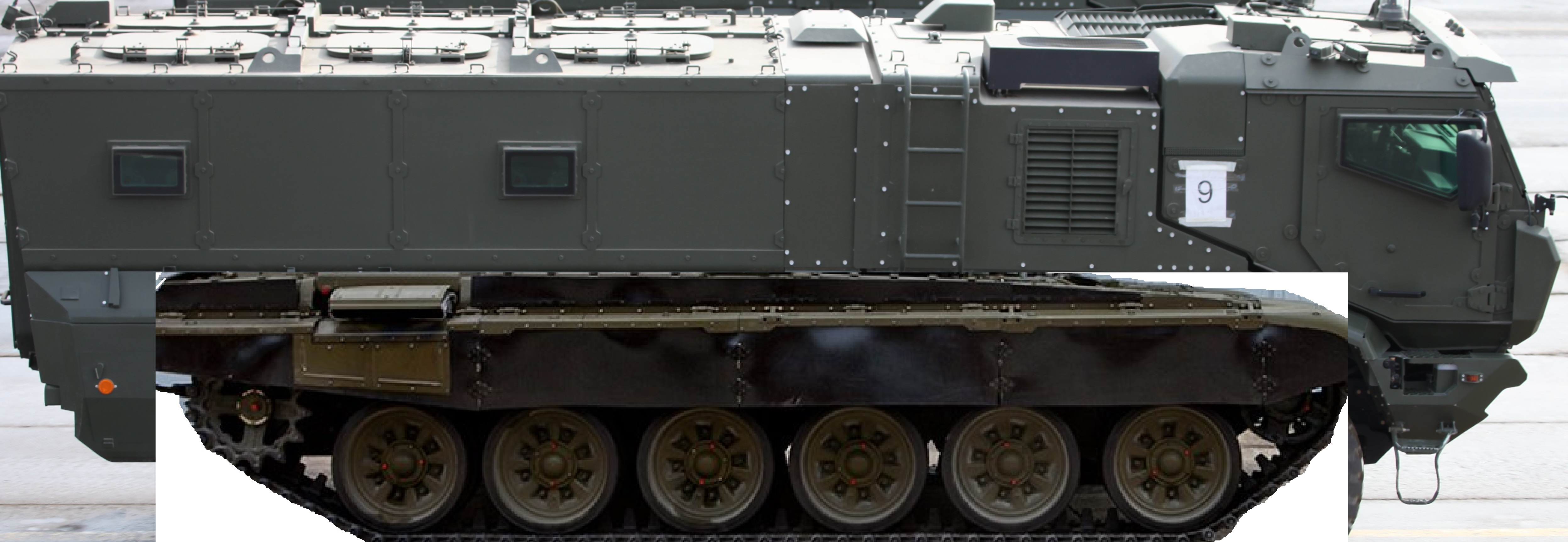 4. ГАЗ 66 с кунгом - кунг поставить как продолжение жилого модуля, перпендикулярно Тайфуну - его длина как раз составляет ширину базы Т-90.
