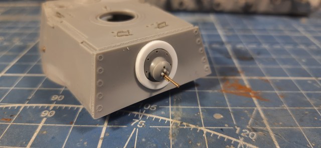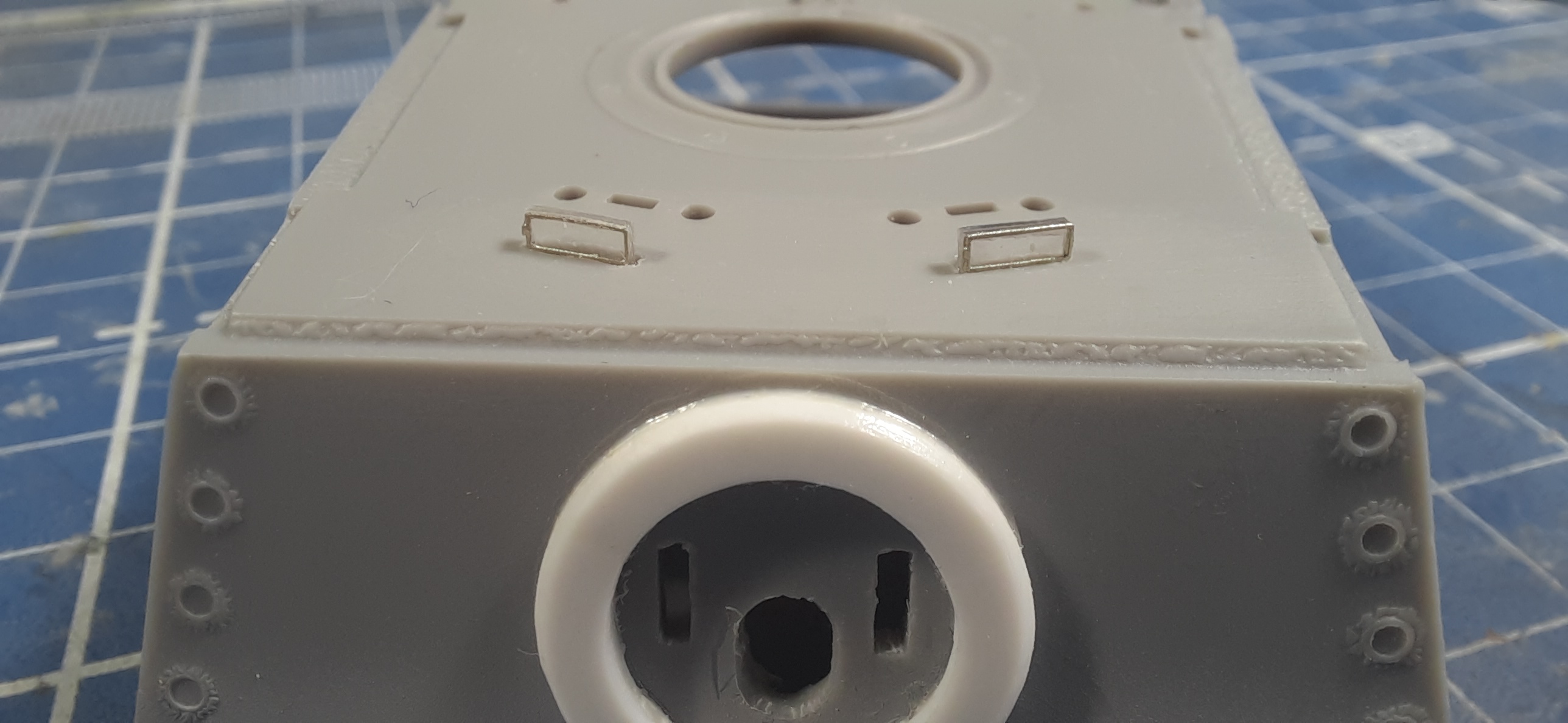 Двигаемся потихонечку по башне. Просмотрев кучу фото, пришел к выводу что крыша башни все таки в шип соединялась и вокруг пулеметной установки есть очень массивное кольцо усиления. Пример на фото. Ничего умнее не придумал, как скрестить бульдога с носорогом) Собственно низ башни из набора Трумпетер 000357, а верх 000358. Далее вклеил детали под установку бронировки смотровых приборов, высверлил в них родную имитацию винтов и заменил их на винты от Э.В.М.