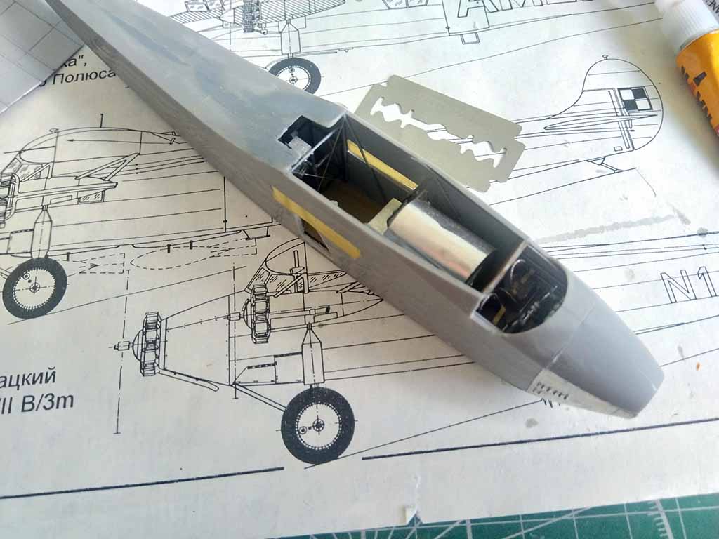 Добавил приборку в кабину пилотов, натянул растяжки внутри салона и наконец-то склеил фюзеляж. Внезапно, вместо работы на полчаса оказалось немало подшпаклевок и шлифовочек. В принципе, скоро можно будет собирать планер и наступит один из моих самых любимых моментов в стройке, когда модель - уже похожа на самолет)