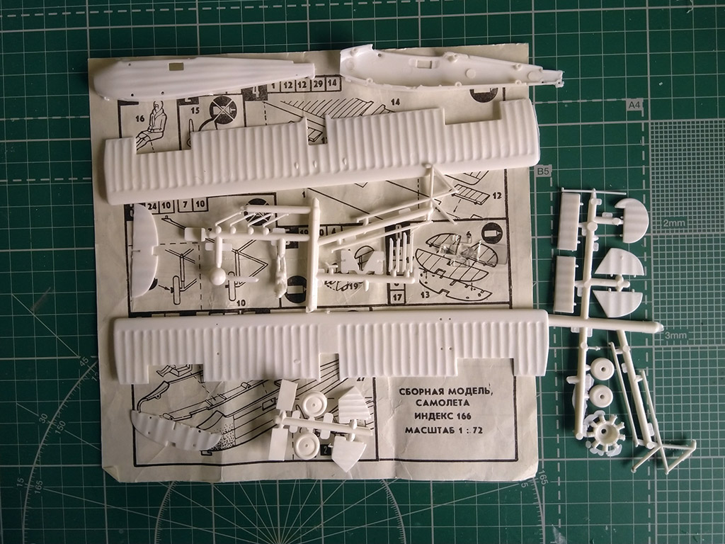 Сам набор, несмотря на более чем почтенный возраст, отлит качественно, пластик звонкий и аж лоснится. По геометрии проблем, фактически, нет, насухую тоже сложился неплохо. По идее, должен весело пойти. Тьфу-тьфу