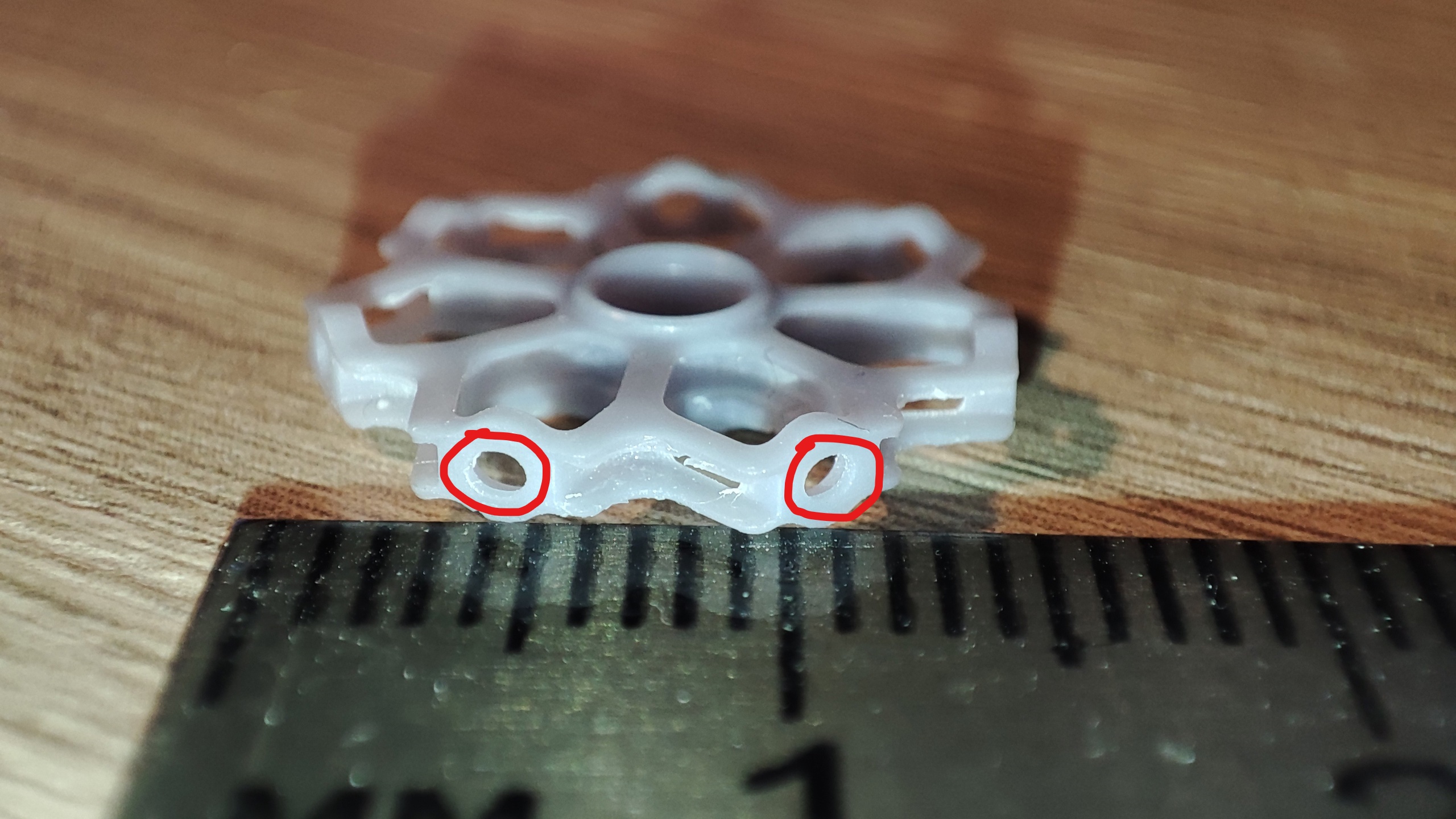 Отсюда паразитная засветка и заплывшие поддержки (надо будет уменьшить время экспозиции основных слоев). Плюсом на деталях ничего не видно, только покраска поможет разглядеть нюансы.