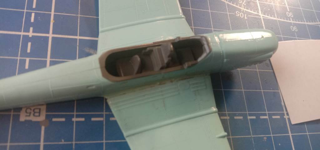 Сначала покрасил внутрянку RLM02, потом исправил на 66. Взялся за самое сложное маскировку фонаря.
