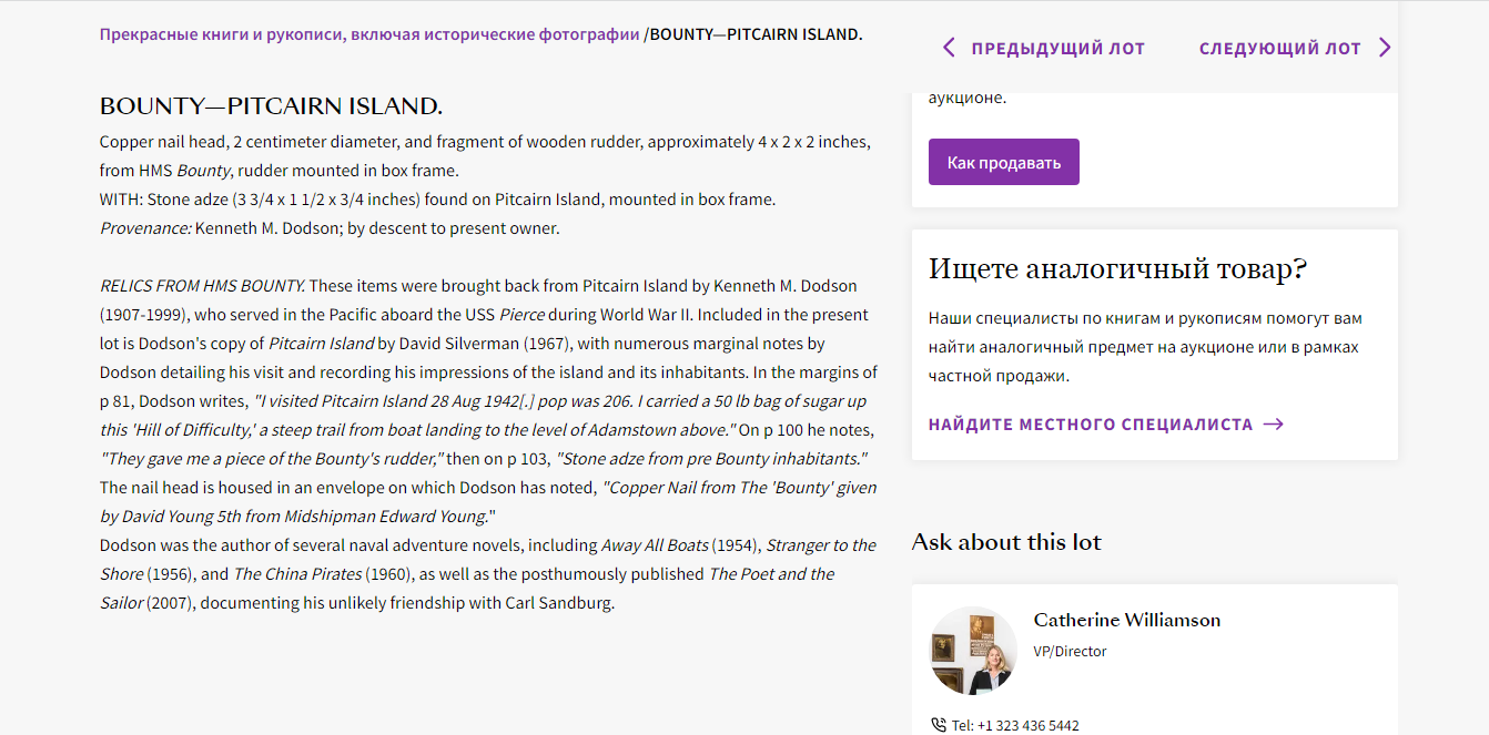 Добрый вечер. Реликвии проданные на аукционе. Скриншот страницы аукциона.