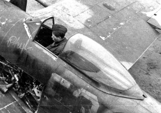 А вот самолет с КВ станцией TR.9. Антенну хорошо видно а также треугольный кронштейн с роликом внутри на мачте антенны через который провод уходил вниз через площадку изолятора в фюзеляж. На самолетах с TR.1133 этого не было. На фото летчик испытатель Джеффри Куилл. Фото из интернета.