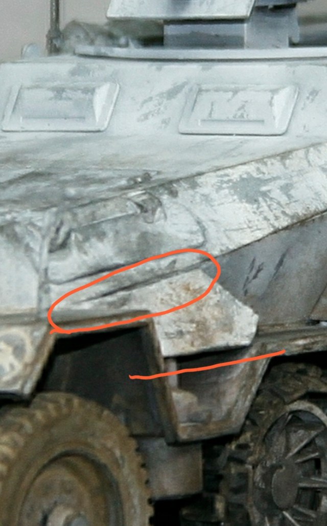 А "в ровень или выпирать" это не то, я вижу, что левый кожух приклеен со смещением, это видно на всех фото. У переднено крыла он приклеен почти вровень с плоскостью капота, а ближе к рубке уходит немного внутрь и это не краска. У прототипа тут был сварной шов (емнип) и кожух немного утоплен внутрь, прям совсем чуть-чуть.