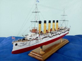 Сам по себе корабль очень красив. И исполнение,наверное,тоже на высоте. Не наш масштаб. Правда бросилась в глаза излишняя толщиа перт и особенно подпертов Фалы кругов в этом масштабе тоже не очень украшают. Но,повторяем,это не наш масштаб,не для наших глаз. А крейсер в этом окрасе очень красив.