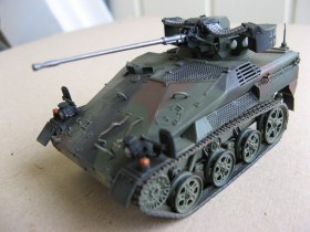 Данная машина предназначена для десантирования с парашютом и непосредственной поддержки пехоты, в связи с чем имеет несколько вариантов вооружения-пушка, ЗРК, ПТУР Тоу (выпускается 1\35). На ранних вариантах, как на моем,-гусеницы были резиновые.