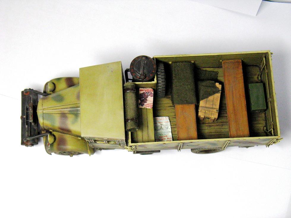 Из добавлений - всё в кузове ( ящички,брезент,плакаты ). Окраска - целая куча разных красок от разных производителей ( просто чтобы испытать их все ),везеринг - МИГовские и Тамиевские пигменты.