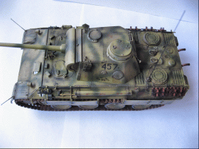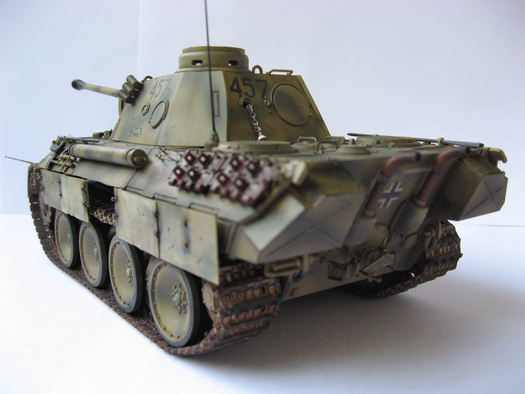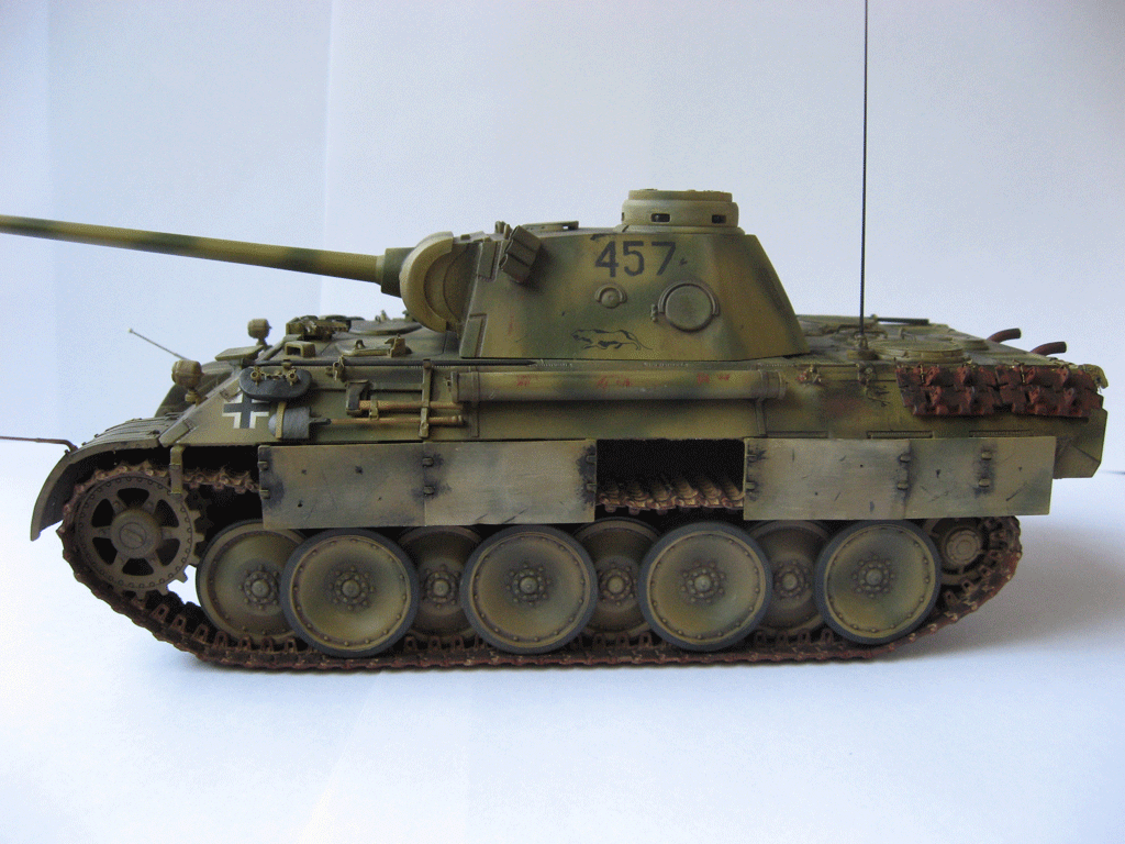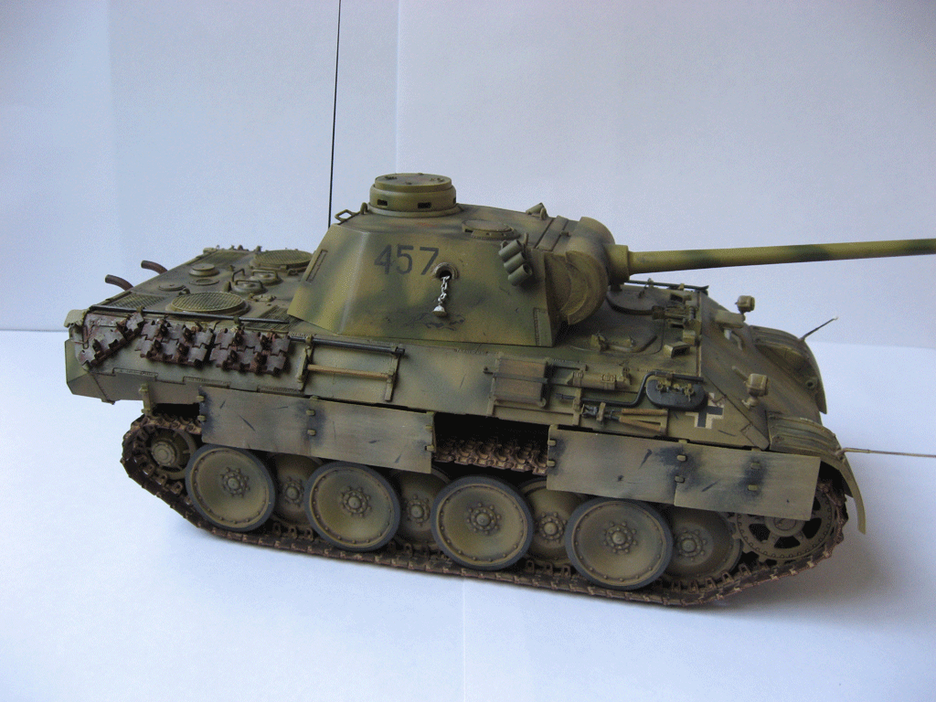 Очень хорошего уровня модель. Мне нравятся модели, на которых автор не переборщил с тонировкой. Видно, что машиной уже "попользовались", но до Курска она ещё не добралась . Судя по "крадущейся пантере" на борту башни, прототипом модели послужил танчик из 10-й танковой бригады. В связи с этим вопрос к автору и другим коллегам. Номер 457 действительно существовал? Т.е. были ли роты, состоящие из пяти взводов?