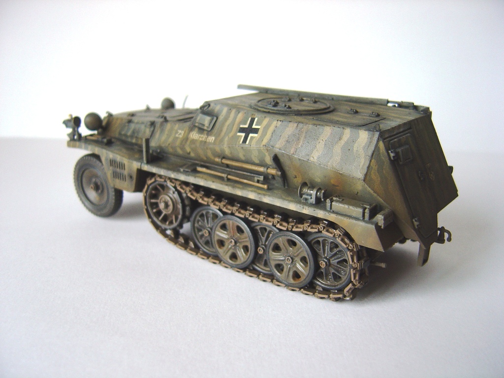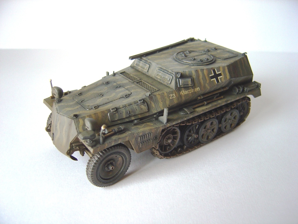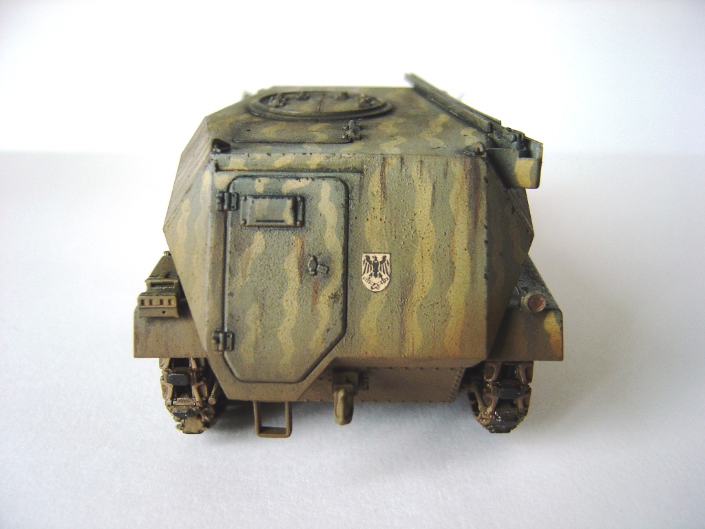 А чего зря критиковать, "Кларочка" вышла на диво хороша. Желтые разводы наверняка кисточкой сделаны - классно получилось, границ цветов даже на отблеск не видно. Один момент только насторожил: вот эти "пупырышки", которые на бортах, по-моему, обычно возникают на технике, которую в музеях ежегодно перекрашивают, не убирая предварительно старую отслоившуюся краску и ржавчину. Впрочем, весьма вероятна ситуация, что и воюющую машину подкрасили прямо по грязи, так что вышесказанное прошу считать не придиркой, а уточнением. Кстати, если мне не изменяет мое замшелое знание немецкого, Klarchen должно бы писаться с "умляутом", то бишь с двумя точками над "а". Может, Драгон ошибся, может, я чего путаю...