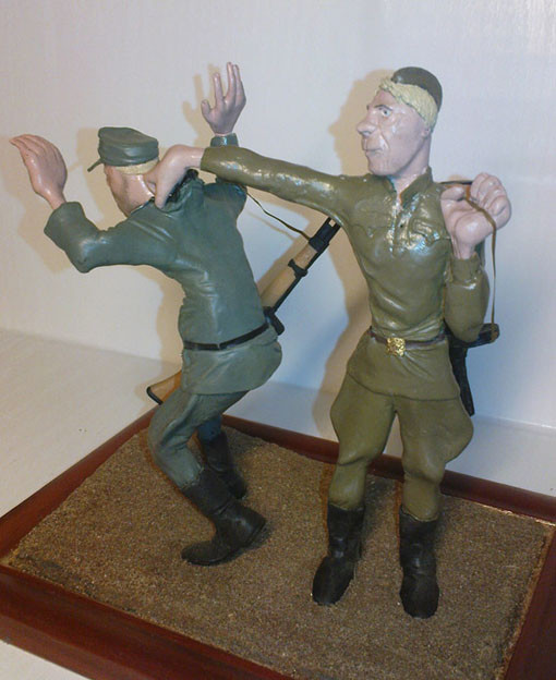 Небольшая диарамка посвященная задержанию германского пехотинца соетским штрафником. (Собственно фриц тоже из этих печально знаменитых частей - по крайней мере за основу взята форма германского штрафника).