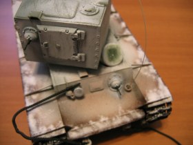 Мне тоже снег понравилася. Оранжевую тряпку перекрасить и присыпать снежок в её складки - живенько бы смотрелось. Цвет, который на люке мехвода из-под камо проглядывает,-слишком на зелёнку похож (раствор бриллиантового зелёного). Цвет тросов тоже сомнителен, словно они закопчены, а сам танк - нет. Но за проявленные старания и творчество 4+.