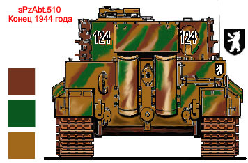 С крестом наверно вы правы.. а вот номер и знак батальона нанесен верно. Такая особенная маркировка была у 510 тяжелого танкового батальона. Вот точные данные: "Образец камуфляжа 501 батальона представлял собой крупные оливково-зеленые заплатообразные пятна с коричневыми краями на стандартном желто-оливковом фоне. Башенные номера (черные с белым контуром) наносились на обоих бортах башни, но не как обычно в передней части, а на тыльной части (справа прямо на спасательном люке). Подобно 501-ому батальону, цифра "3" у второй роты была с угловатой верхней частью, а у других рот тройка была обычная, закругленная. Знак различия 510-го батальона - "Берлинский медведь".