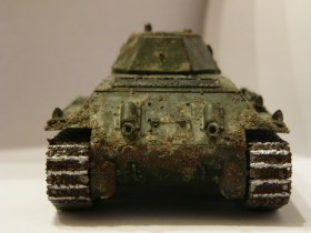 Явный перебор со ржавчиной и грязью! Если уж и ставили цель показать ОЧЕНЬ поездивший танк, то должна быть такие вещи как вмятины, сколы краски, и т.п. Ну и однозначно подобного вида модели нужно ставить в соответствующие основания. Сама по себе она смотрится "грязно"