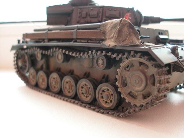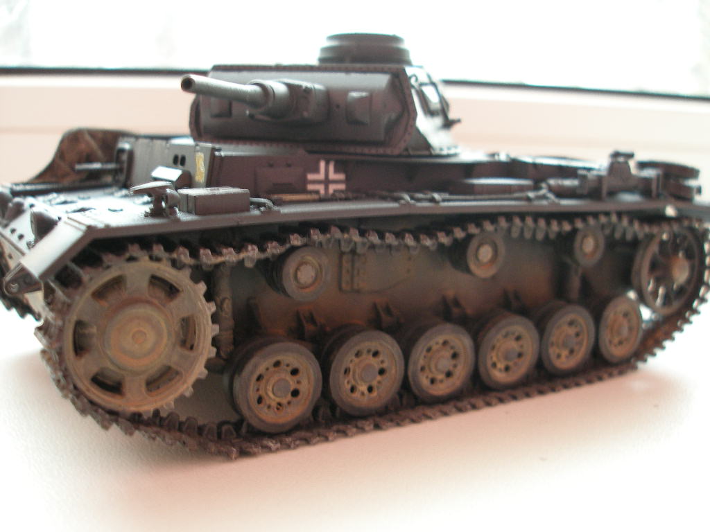Собиралась вообщем то неплохо, учитывая что как мне сказали модель старая. В инструкции придлагалось собрать 2 варинта, для африки и для войны на восточном фронте, выбрал второе, так как мало встречал именно данную трешку. Окраска, акрил тамия, смывка эмаль тамия, пастель. Попытался сделать выстветление описанное на одном из сайтов, вроде получилось, но после задувки глянцевым лаком, танк стал однотонным (странно)