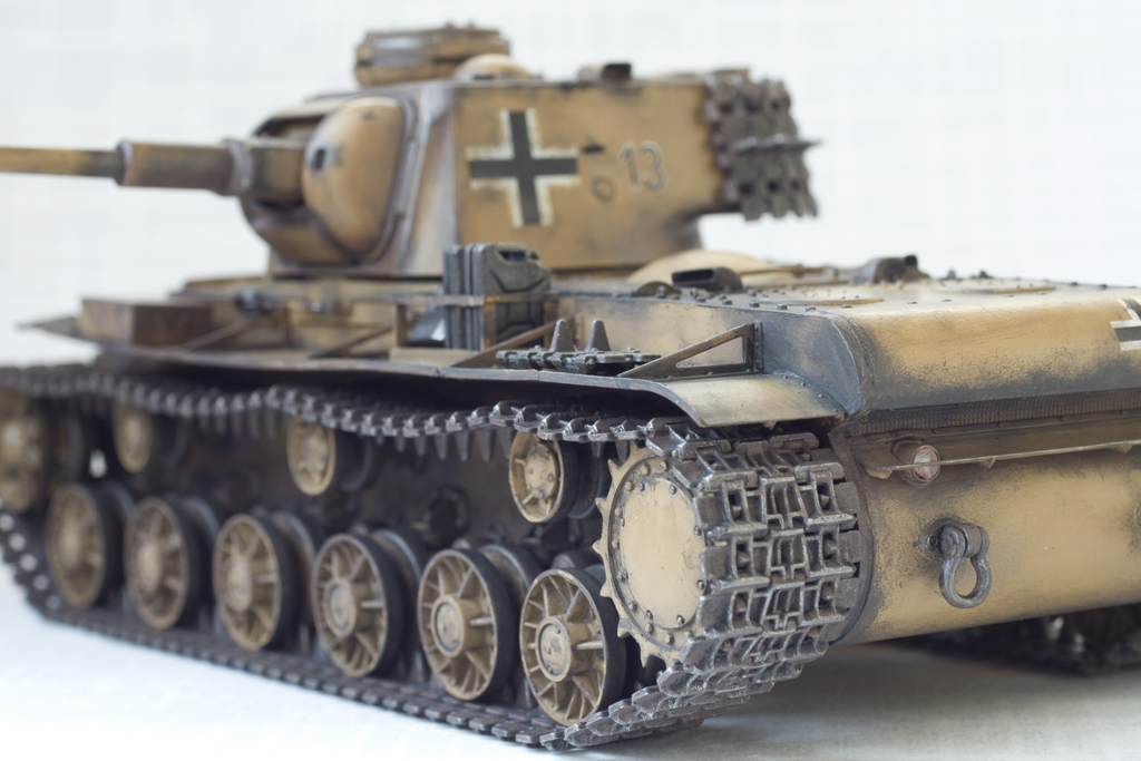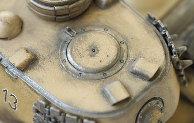 Посмотрите внимательней. На траках есть следы от опорных катков, и сами катки графитом натерты. Просто блеска полированой стали конечно нет, и в данном случае ракурсы фото оказались такими что данный эффект не очень хорошо различим.