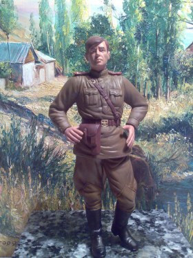 Солдаты солдаты....как много в этом слове...особенно для моделиста, эх нелегкое это дело расписывать фигуры.Данных солдат приобрел для дополнения к своим танкам,красил разведенной до нужной консистенции темперой через аэр, предварительно покрыв фигуру тонким слоем тамиевского акрила т к грунтовки в наличии не было(на акрил темпера ложится ровным слоем и равномерно высыхает )лицо, руки и некоторые детали одежды красил кистью. Прежде чем браться за покраску изучил кучу статей в интернете ...начал пробывать на старой фигуре, неудовлетвореный "камуфлированным чертиком" я решил красить все по старинке без всяких высветленй и старений , ну не дорос я в фигурах до такого уровня чтобы использовать всякие прибамбасы, лишний раз убедился что фигуры- это не танчики красить..На этом приключения не закончились, офицерский планшет был благополучно съеден кошкой, пришлось изготавливать новый из чертежного картона.Офицерская фуражка упрямо не хотела налезать на голову своему обладателю пришлось оставить как есть- дал держать ее в руке...